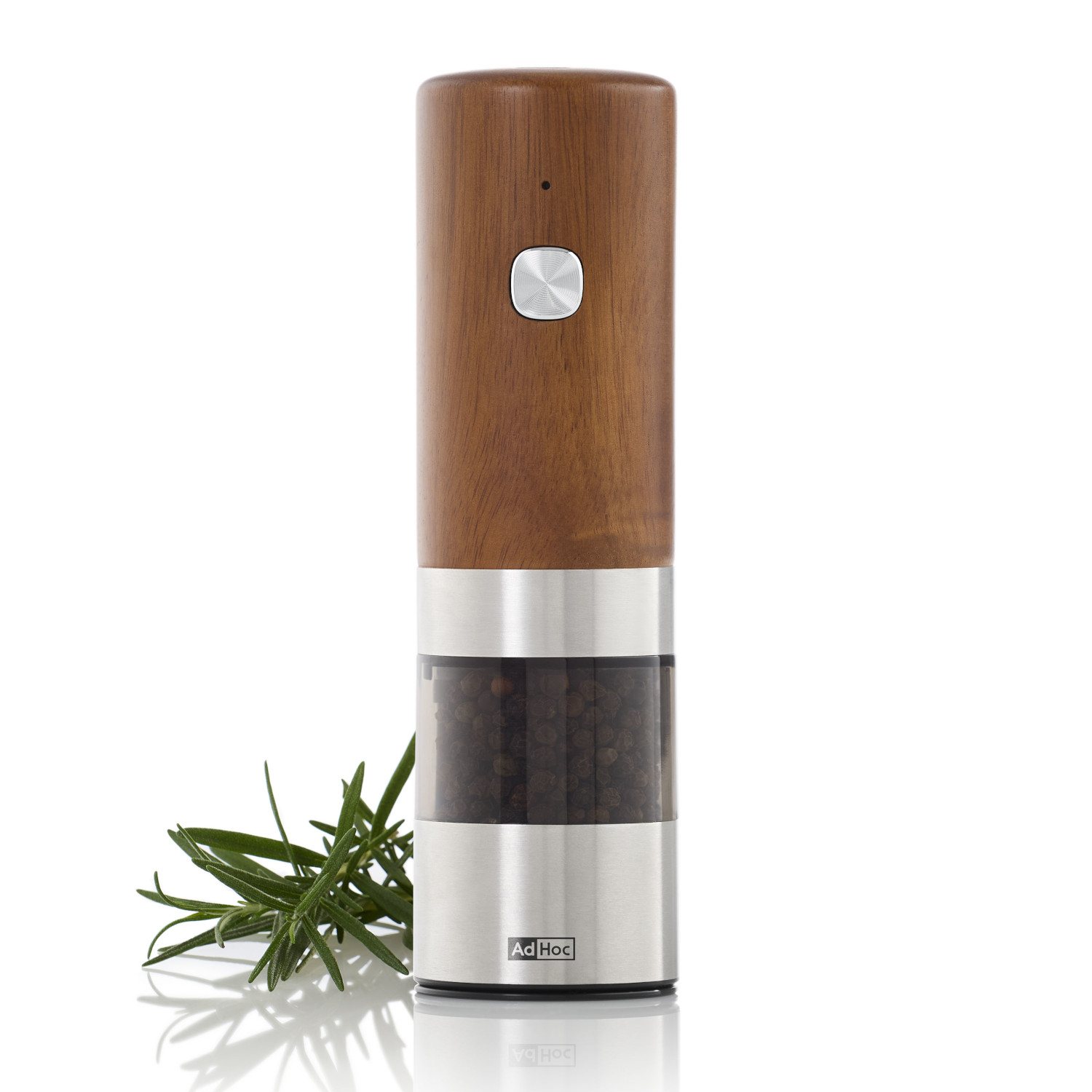 Z akumulatorowym młynkiem i.Mill przyprawisz potrawę za naciśnięciem przycisku używając tylko jednej ręki! Przy pomocy dołączonego do zestawu kabla USB-C bez problemu naładujesz wbudowany litowy akumulator Poziom naładowania wskazuje pojedyncza dioda LED, która miga podczas ładowania. Jedno naładowanie wystarcza na bardzo długo a nawet na kilkaset użyć (w zależności od długości procesu mielenia). Sercem młynka są ceramiczne żarna odporne na korozję i zużycie, które nie chłoną zapachów, dzięki czemu zawsze możesz cieszyć się czystym smakiem przypraw. Żarna są regulowane pokrętłem w szerokim zakresie. Użytkowanie młynka jest przyjemne dla ucha i wiąże się przede wszystkim z dźwiękiem mielonej przyprawy, ponieważ silnik pracuje niezwykle cicho. Nie mogło również zabraknąć oświetlenia w postaci diody LED umieszczonej na spodzie młynka obok żaren. Całości dopełnia kapselek szczelnie osłaniający żarna od spodu, chroniący przyprawy przed wietrzeniem, a blat przed zabrudzeniem. Instrukcja: W celu napełnienia pojemnika na przyprawy należy przekręcić górną cześć zgodnie z oznaczeniem i ustawić pionową kreskę na symbolu otwartej kłódki. Następnie należy zdjąć górną część z silniczkiem, odsłaniając pojemnik na przyprawy. Nie zaleca się ubijania przyprawy wewnątrz pojemnika. Do swobodnego zamknięcia młynka niezbędne jest pozostawienie odpowiedniej ilości miejsca w pojemniku na przyprawy. Szczególną uwagę należy zwracać na czystość przypraw. Pewne zanieczyszczenia mogą doprowadzić do uszkodzenia żaren. Przed uruchomieniem młynka konieczne jest upewnienie się, że wszystkie elementy są na miejscu a młynek został poprawnie złożony i zamknięty: pionowa kreska na symbolu zamkniętej kłódki. Wylot przypraw jest otwierany, poprzez zdjęcie zatyczki na spodzie młynka. Aby wybrać grubość mielenia należy młynek odwrócić (przycisk uruchamiający powinien być na dole), upewnić się że żarna są czyste, nie ma zablokowanych kawałków przypraw – delikatnie potrząsnąć, a następnie ustawić grubość mielenia przy pomocy pokrętła pod żarnami. W celu uzyskania bardziej rozdrobnionej przyprawy należy obracać pokrętłem zgodnie z ruchem wskazówek zegara, a gdy przyprawa powinna być zmielona grubiej należy obracać pokrętłem w przeciwnym kierunku do ruchu wskazówek zegara. Jeżeli młynek miele coraz wolniej należy przerwać mielenie, odwrócić młynek wylotem przypraw do góry i lekko potrząsnąć jednocześnie uruchamiając młynek. Twardszy kawałek pieprzu lub soli może blokować żarna. Nie należy myć w zmywarce. Młynek należy czyścić suchą, miękka ściereczką. Nigdy nie należy młynka zanurzać w wodzie. Żarna można oczyścić delikatnie szczoteczką. W zestawie kabel USB, szczoteczka. Materiały: drewno akcja, stal nierdzewna, przyciemniany akryl, żarna ceramika. Przybliżone wymiary: – wysokość: 17cm, – średnica: 5cm. Przybliżone wymiary brutto: – wysokość: 18cm, – długość: 6,8cm, – szerokość: 5,5cm. Przybliżona waga brutto: 0,317kg. Opakowanie: kartonowe pudełko prezentowe.