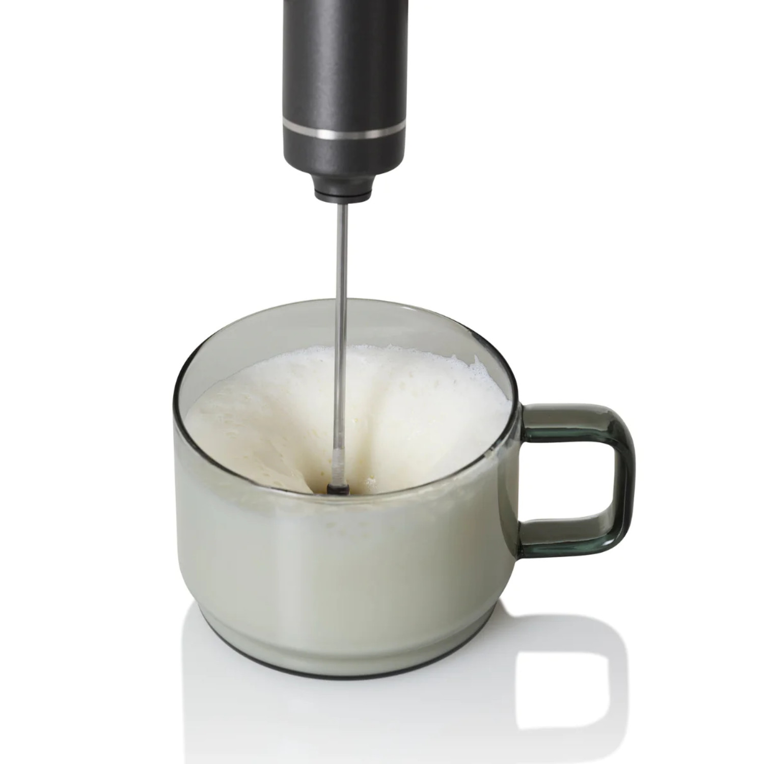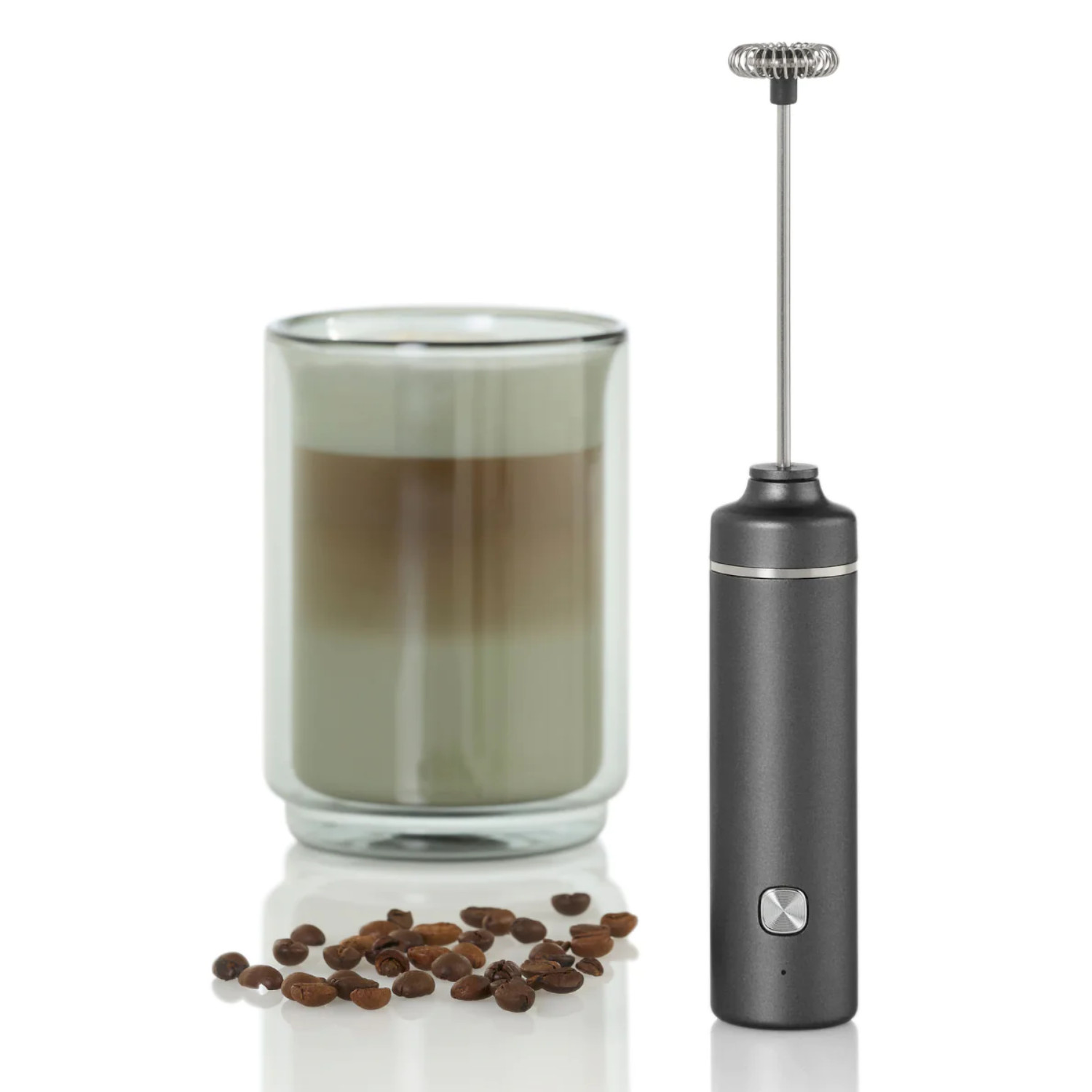 Stwórz gładką, kremową piankę do cappuccino, latte, macchiato lub do gorącej czekolady w kilka sekund, jak z Twojej ulubionej kawiarni ze spieniaczem akumulatorowym marki AdHoc. Spieniacz jest zasilany akumulatorem litowym USB-C. Urządzanie jest lekkie i wydajne, obraca się z prędkością 10000 obrotów/min, spieniając mleko na idealną piankę. Końcówkę trzepaczki- sprężynkę spieniającą można zdjąć i umyć w zmywarce. Spieniacz nadaje się również do delikatnego winegretu, sosów lub lekkich koktajli. Przed pierwszym użyciem naładuj urządzenie za pomocą załączonego kabla USB. Podczas ładowania święci się czerwona dioda. Spieniacza nie należy zanurzać w wodzie, myjemy tylko metalową sprężynkę i metalowy trzpień, na której jest ona osadzona. Nasza rada: wlej do kubka ciepłą wodę z łagodnym detergentem i uruchom spieniacz na chwilę dokładnie jak przy spienianiu mleka, potwórz to następnie z czystą wodą, dokładnie osusz. Materiał: tworzywo, stal nierdzewna. Przybliżone wymiary: – wysokość: 20,8cm, – średnica: 3,2cm. Przybliżone wymiary brutto: – wysokość: 21,5cm, – długość: 7,3cm, – szerokość: 6,7cm. Przybliżona waga brutto: 0,173kg. Opakowanie: kartonowe pudełko prezentowe.