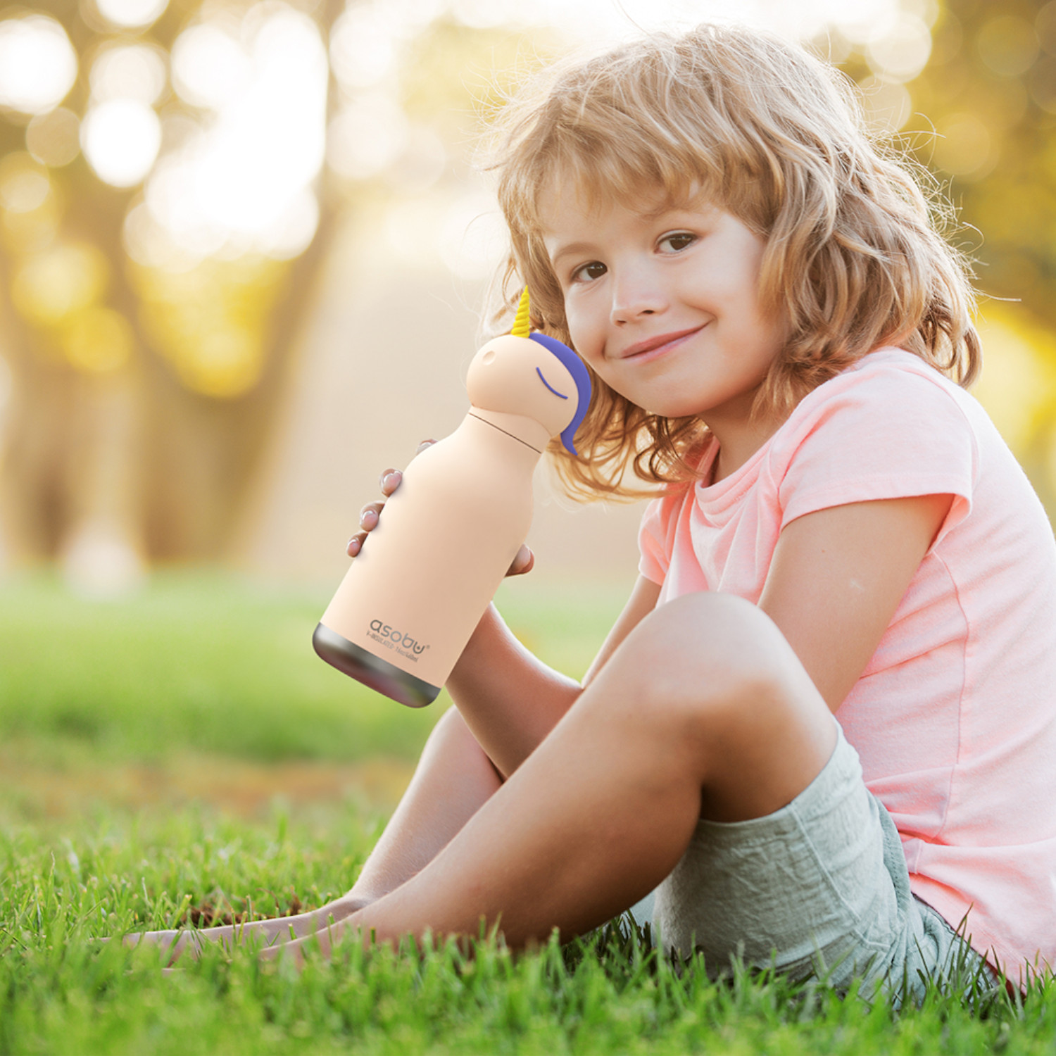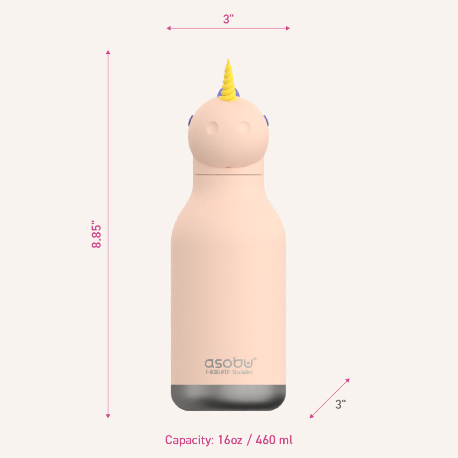 Szukasz zabawnej i funkcjonalnej butelki na wodę dla swojego malucha? Butelka Asobu z linii Bestie to urocza butelka na wodę dla dzieci ze stali nierdzewnej z różnymi główkami na zakrętce! Butelkę pokrywa na zewnątrz tworzywo typu SOFT TOUCH, co sprawia, że butelka jest przyjemna w dotyku. Wewnątrz butelki znajduje się wyjmowana słomka z miękkim ustnikiem. Na spodzie butelki koło z antypoślizgowego silikonu. Butelka przeznaczona jest dla dzieci od 4 roku życia. W trosce o środowisko i zdrowie produkty ASOBU wykonane są z trwałych i bezpiecznych materiałów jak stal nierdzewna, tritan i tworzywa BPA FREE. Tworzywo BPA Free oznacza, że jest bezpieczne i wolne od szkodliwych substancji. Dwuścienna konstrukcja butelek/termosów nie tylko dłużej utrzymuje temperaturę, ale też zapobiega kondensacji. Dwuścienne ścianki wewnątrz są pokryte dodatkowo miedzią dla jeszcze lepszej izolacji. Zalecenia: – Przed pierwszym użyciem umyj wszystkie elementy naczynia ręcznie. – Przed napełnieniem, zimnym lub gorącym płynem zaleca się butelkę przepłukać odpowiednio zimną lub gorącą wodą. – Pij ostrożnie z butelki szczególnie jeśli została napełniona gorącym płynem! Uwaga: 1. Nie należy zamrażać lub podgrzewać butelki/termosu na płytach kuchennych, w piekarniku lub kuchence mikrofalowej, butelka służy do napełniania płynem i nie jest odpowiednim naczyniem do podgrzewania lub zamrażania. 2. Nie należy wlewać napojów gazowanych, produktów mlecznych i żywności dla dzieci ze względu na ryzyko rozwoju bakterii. 3. Nie należy umieszczać kostek lodu wewnątrz. 4. Butelka nie służy do przechowywania wody, czy innych płynów dłużej niż 24 godziny. 5. Wszystkie elementy butelek/termosów należy myć ręcznie, gąbką i płynem do naczyń. Umyte naczynie należy dokładnie osuszyć i pozostawić do doschnięcia w suchym dobrze wentylowanym miejscu. 6. Nie należy stosować agresywnych środków czyszczących takich jak chlor, wybielacz czy też soda. Materiał: stal nierdzewna, tworzywo BPA FREE, silikon, miedź. Przybliżone wymiary: wysokość – 23cm, średnica – 7,5cm, pojemność: 460ml. Przybliżone wymiary brutto: wysokość – 24cm, długość – 8,4cm, szerokość – 8,2cm. Przybliżona waga brutto: 0,398kg. Opakowanie: kartonowe pudełko prezentowe.