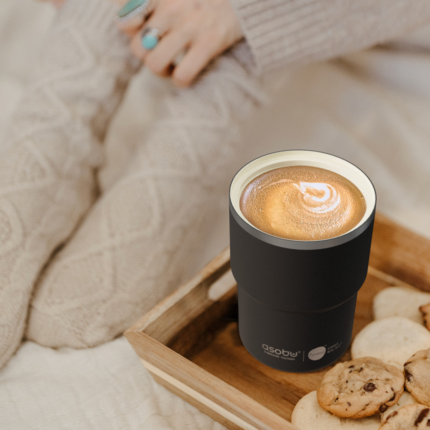 Kawa bez metalicznego posmaku z metalowego kubka, z kubkiem The Mini Pick Up ASOBU to możliwe. Kubek The Mini Pick Up ASOBU łączy zalety izolowanego termicznie kubka z porcelanową filiżanką. Gładka, ceramiczna powłoka zachowuje smak napoju, a izolowana próżniowo obudowa ze stali nierdzewnej utrzymuje napoje gorące przez długi czas. Otwierana pokrywa jest łatwa w użyciu i idealnie pasuje do ceramicznej wyściółki. Pasuje do standardowych uchwytów samochodowych. Na spodzie silikonowy pierścień. W trosce o środowisko i zdrowie produkty ASOBU wykonane są z trwałych i bezpiecznych materiałów jak stal nierdzewna, tritan i tworzywa BPA FREE. Tworzywo BPA Free oznacza, że jest bezpieczne i wolne od szkodliwych substancji. Dwuścienna konstrukcja kubka nie tylko dłużej utrzymuje temperaturę, ale też zapobiega kondensacji. Dwuścienne ścianki wewnątrz są pokryte dodatkowo miedzią dla jeszcze lepszej izolacji. Zalecenia: – Przed pierwszym użyciem umyj wszystkie elementy naczynia ręcznie. – Przed napełnieniem, zimnym lub gorącym płynem zaleca się butelkę przepłukać odpowiednio zimną lub gorącą wodą. – Pij ostrożnie z kubka szczególnie jeśli został napełniony gorącym płynem! Uwaga: 1. Produkt nie jest odpowiedni dla dzieci. 2. Nie należy zamrażać lub podgrzewać kubka na płytach kuchennych, w piekarniku lub kuchence mikrofalowej, kubek służy do napełniania płynem i nie jest odpowiednim naczyniem do podgrzewania lub zamrażania. 3. Nie należy wlewać napojów gazowanych, produktów mlecznych i żywności dla dzieci ze względu na ryzyko rozwoju bakterii. 4. Nie należy umieszczać kostek lodu wewnątrz. 5. Butelka nie służy do przechowywania wody, czy innych płynów dłużej niż 24 godziny. 6. Wszystkie elementy butelek/termosów należy myć ręcznie, gąbką i płynem do naczyń. Umyte naczynie należy dokładnie osuszyć i pozostawić do doschnięcia w suchym dobrze wentylowanym miejscu. 7. Nie należy stosować agresywnych środków czyszczących takich jak chlor, wybielacz czy też soda. Materiał: stal nierdzewna, tworzywo BPA FREE, silikon, miedź. Przybliżone wymiary: wysokość – 14,5cm, średnica – 9cm, średnica dół – 7,3cm, pojemność: 355ml. Przybliżone wymiary brutto: wysokość – 15cm, długość – 9,5cm, szerokość – 9,5cm. Przybliżona waga brutto: 0,316kg. Opakowanie: kartonowe pudełko prezentowe.