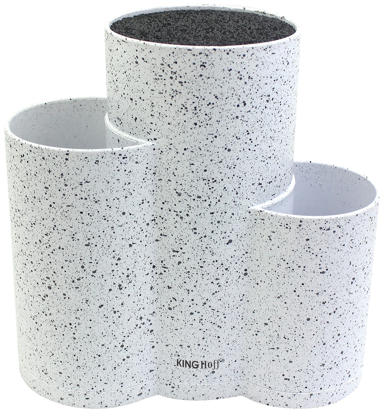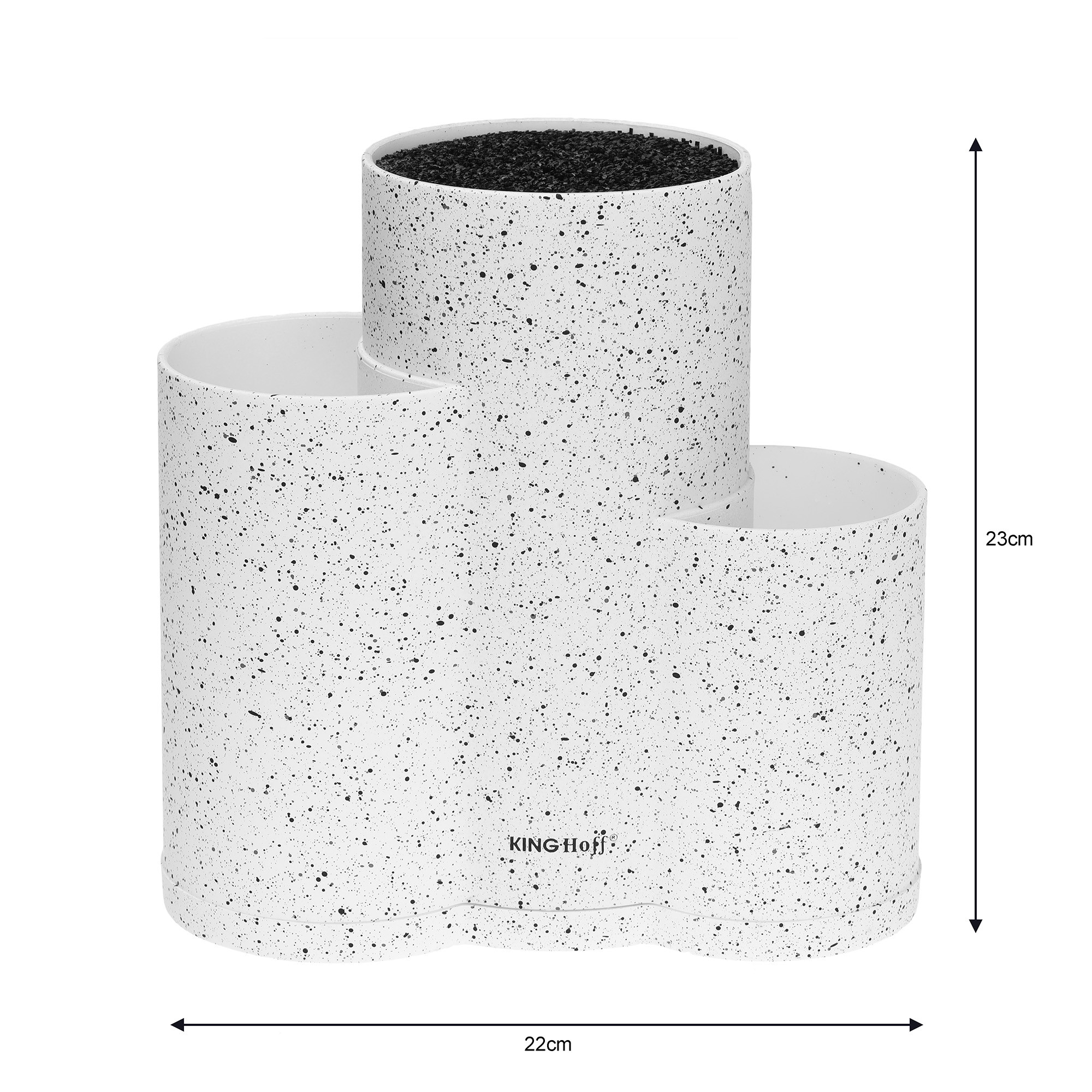 Uniwersalny stojak blok na noże 3 w 1. Trzykomorowy – pozostałe dwie komory można wykorzystać na dowolne przybory kuchenne. Wykonany z tworzywa. Wewnątrz stojaka w środkowej komorze umieszczono wkład z nitek polipropylenu, które umożliwiają przechowywanie noży o dowolnej długości i szerokości jeżeli tylko zmieszczą się w stojaku. Stojak pomieści do 6 noży przeciętnej wielkości.