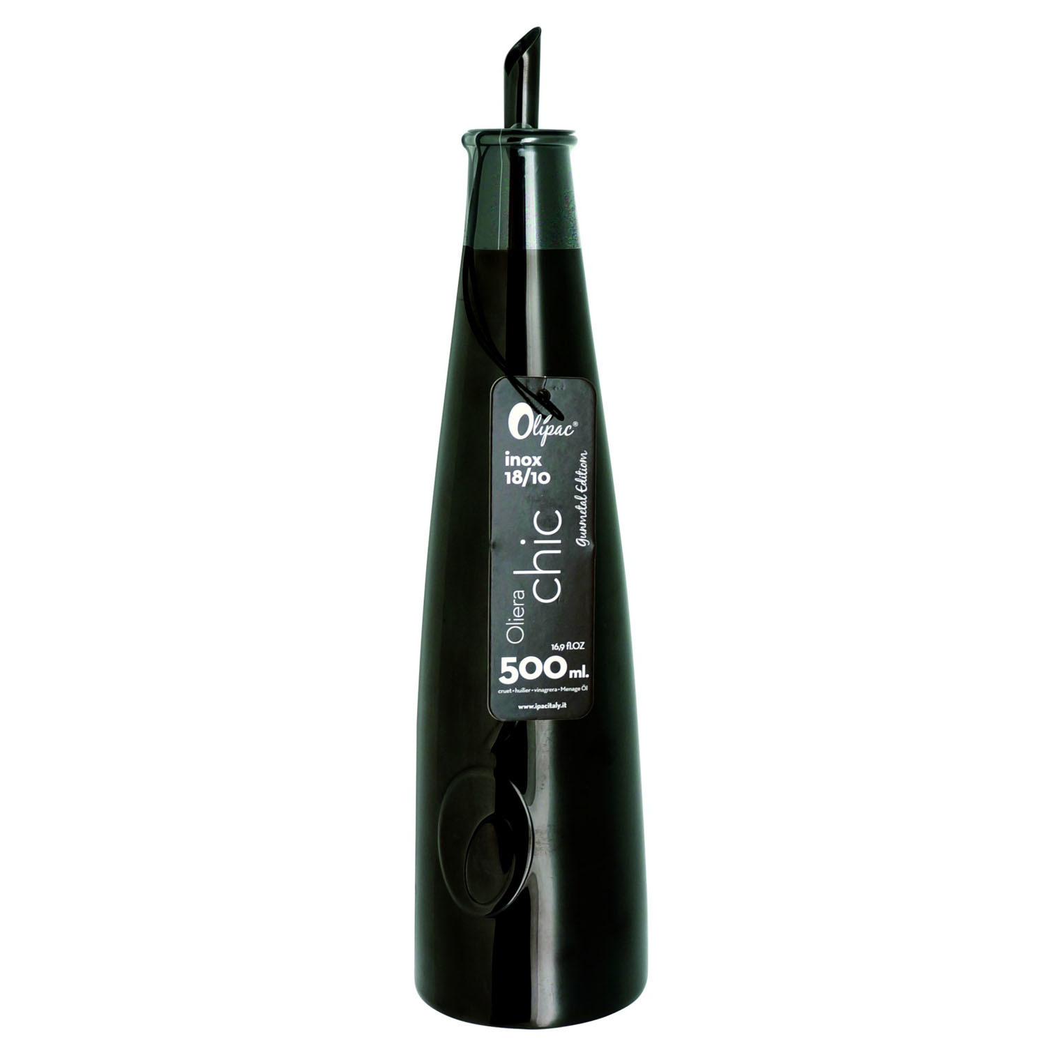 Butelka na oliwę CHIC ze stali nierdzewnej o pojemności 500ml w kolorze gunmetal, charakteryzuje się urzekającym wyglądem. Została wyposażona w praktyczny nalewak zapobiegający kapaniu, który pomaga kontrolować przepływ oliwy. Jej wydłużony kształt pozwala na jej łatwe uchwycenie w dłoni. Stal nierdzewna jest materiałem zdolnym do zachowania organoleptycznych właściwości oliwy wraz z upływem czasu poprzez zagwarantowanie maksymalnej ochrony przed światłem, powietrzem oraz zapachami, zapobiegając utlenianiu oraz pozostałym procesom degradacyjnym. Można myć w zmywarce. Materiał: stal nierdzewna. Pojemność: 0,5L. Wymiary netto: 28x7cm. Waga brutto: 0,181kg. Waga netto: 0,179kg.