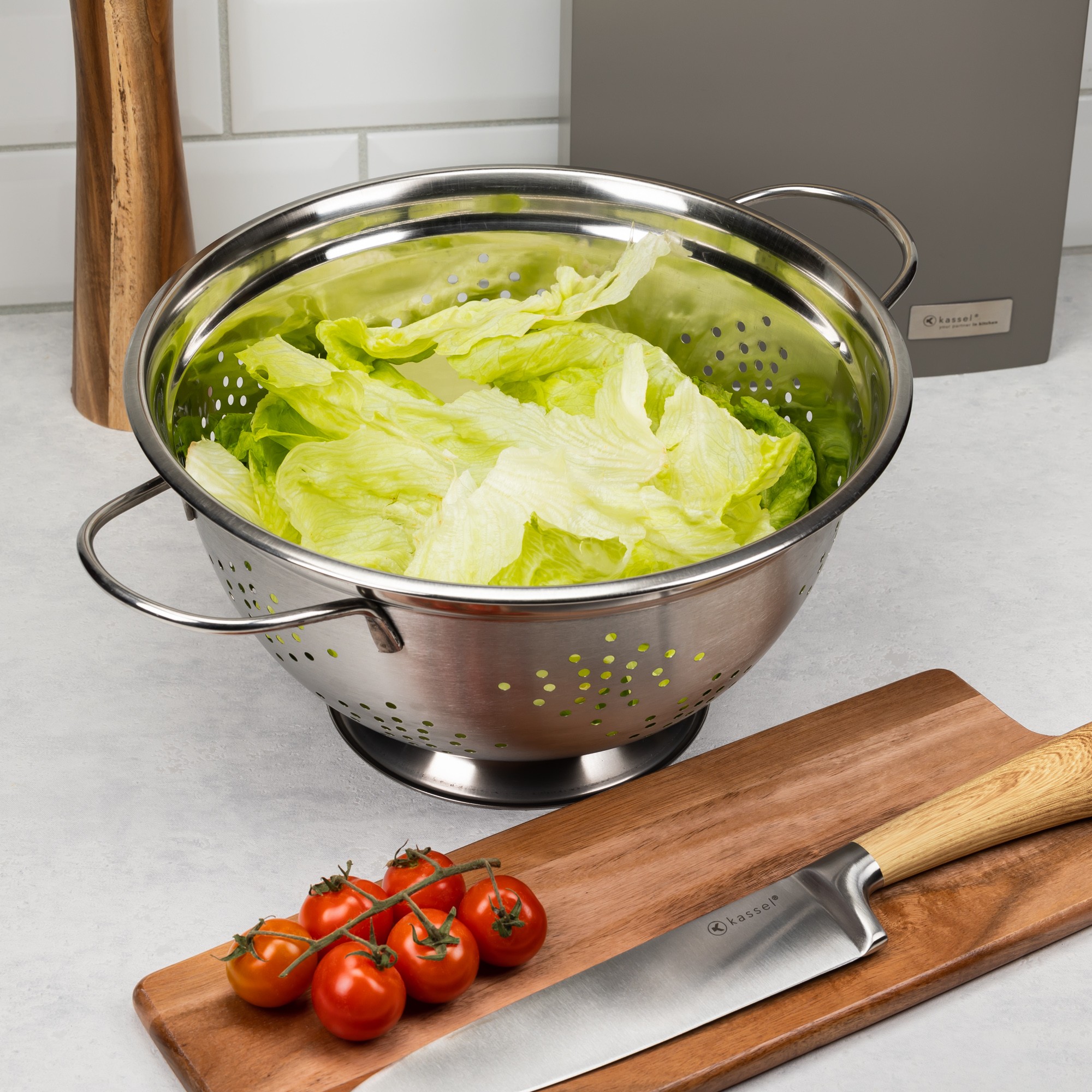 Wykonany z wysokiej jakości stali nierdzewnej durszlak. Niezbędny w każdej kuchni do płukania warzyw czy owoców lub sałaty. Bedzie przydatny do odcedzania makaronu, ziemniaków lub warzyw.