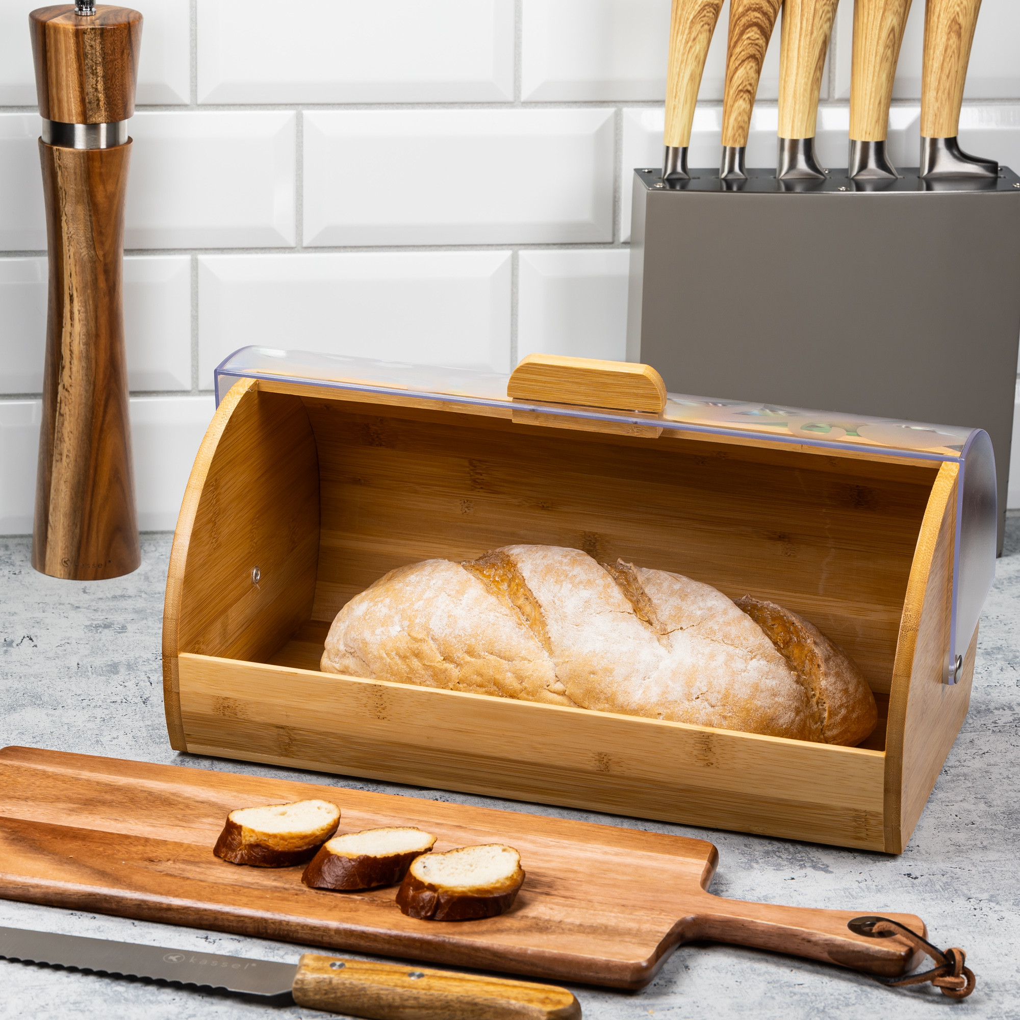 Klasyczny chlebak bambusowy KINGHoff z transparentną pokrywą – elegancja i praktyczność w jednym