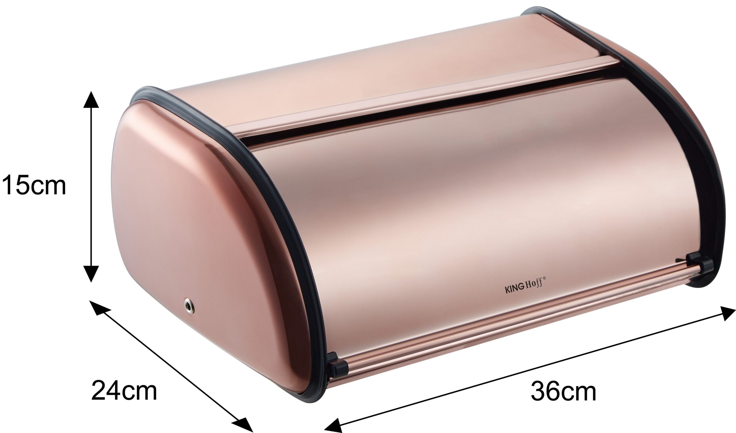 Stylowy chlebak KH-1840 marki KINGHoff w odcieniu różowego złota to połączenie nowoczesnego designu i funkcjonalności. Wykonany z ekologicznych, higienicznych materiałów, zapewnia bezpieczne przechowywanie pieczywa, chroniąc je przed wysychaniem. Jego kompaktowe wymiary sprawiają, że świetnie sprawdzi się zarówno w dużych, jak i mniejszych kuchniach, nie zajmując dużo miejsca na blacie.