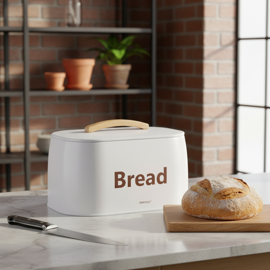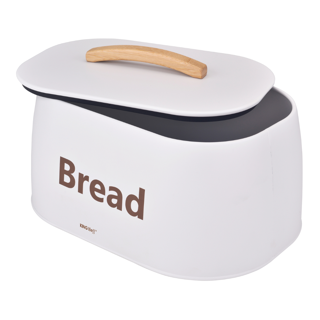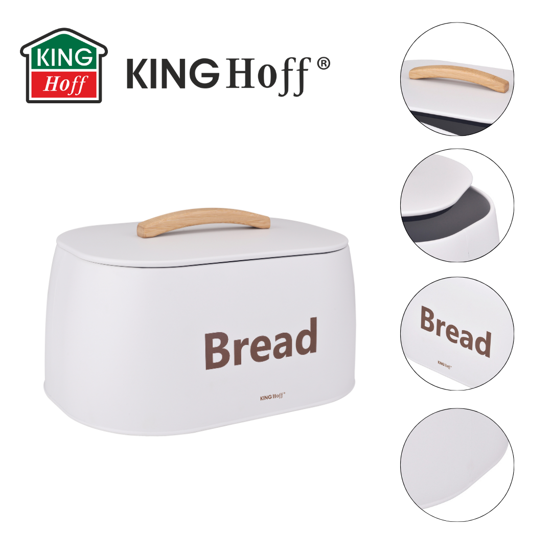 Nowoczesny chlebak marki KINGHOFF to idealne rozwiązanie do przechowywania pieczywa w elegancki sposób. Jego biała, matowa powierzchnia w połączeniu z naturalnym, drewnianym uchwytem tworzy wyjątkowy duet, który świetnie komponuje się z jasnymi, minimalistycznymi kuchniami. Dzięki solidnej konstrukcji chlebak nie tylko zachwyca wyglądem, ale także dba o świeżość Twojego ulubionego pieczywa.