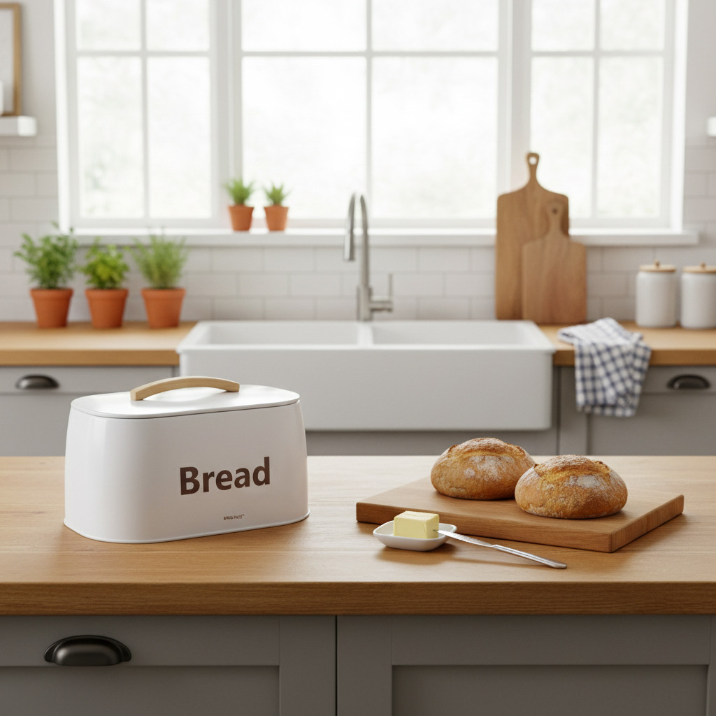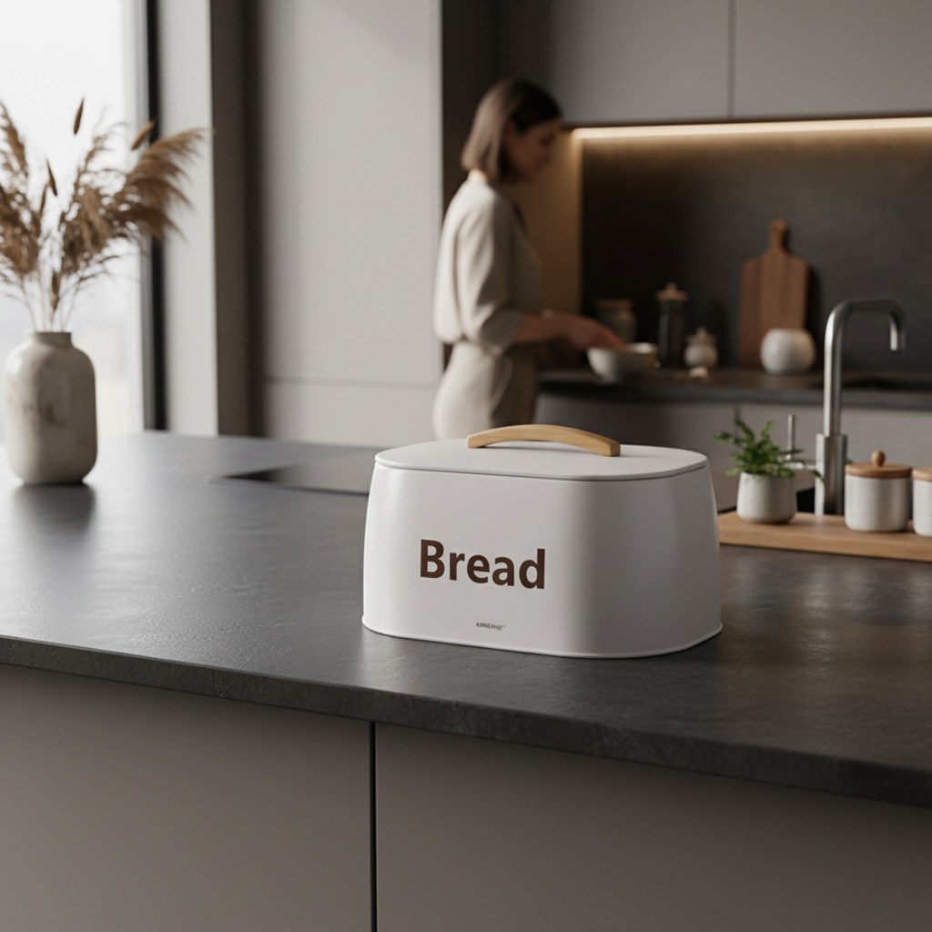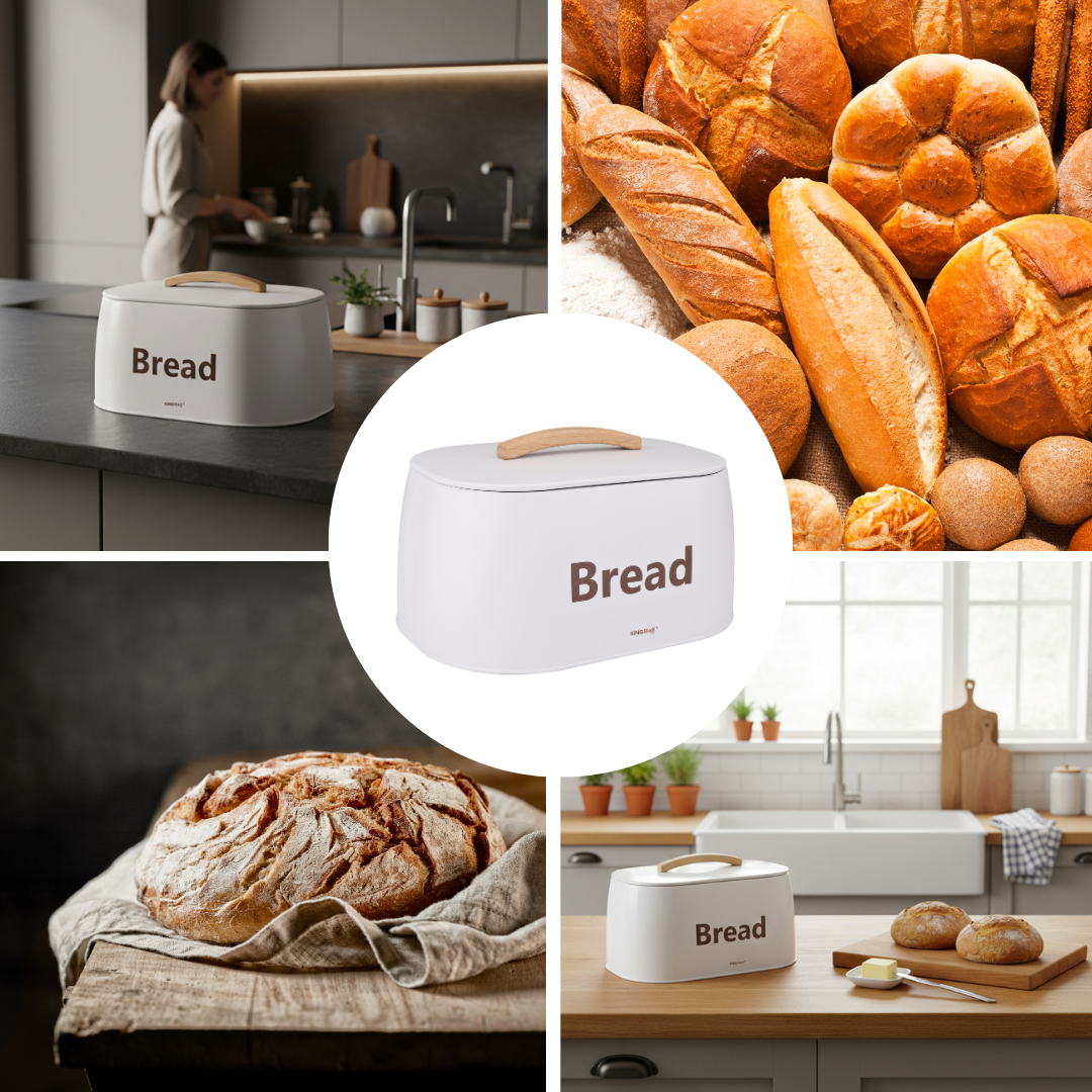 Nowoczesny chlebak marki KINGHOFF to idealne rozwiązanie do przechowywania pieczywa w elegancki sposób. Jego biała, matowa powierzchnia w połączeniu z naturalnym, drewnianym uchwytem tworzy wyjątkowy duet, który świetnie komponuje się z jasnymi, minimalistycznymi kuchniami. Dzięki solidnej konstrukcji chlebak nie tylko zachwyca wyglądem, ale także dba o świeżość Twojego ulubionego pieczywa.