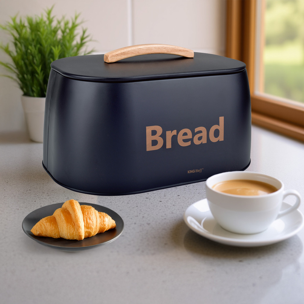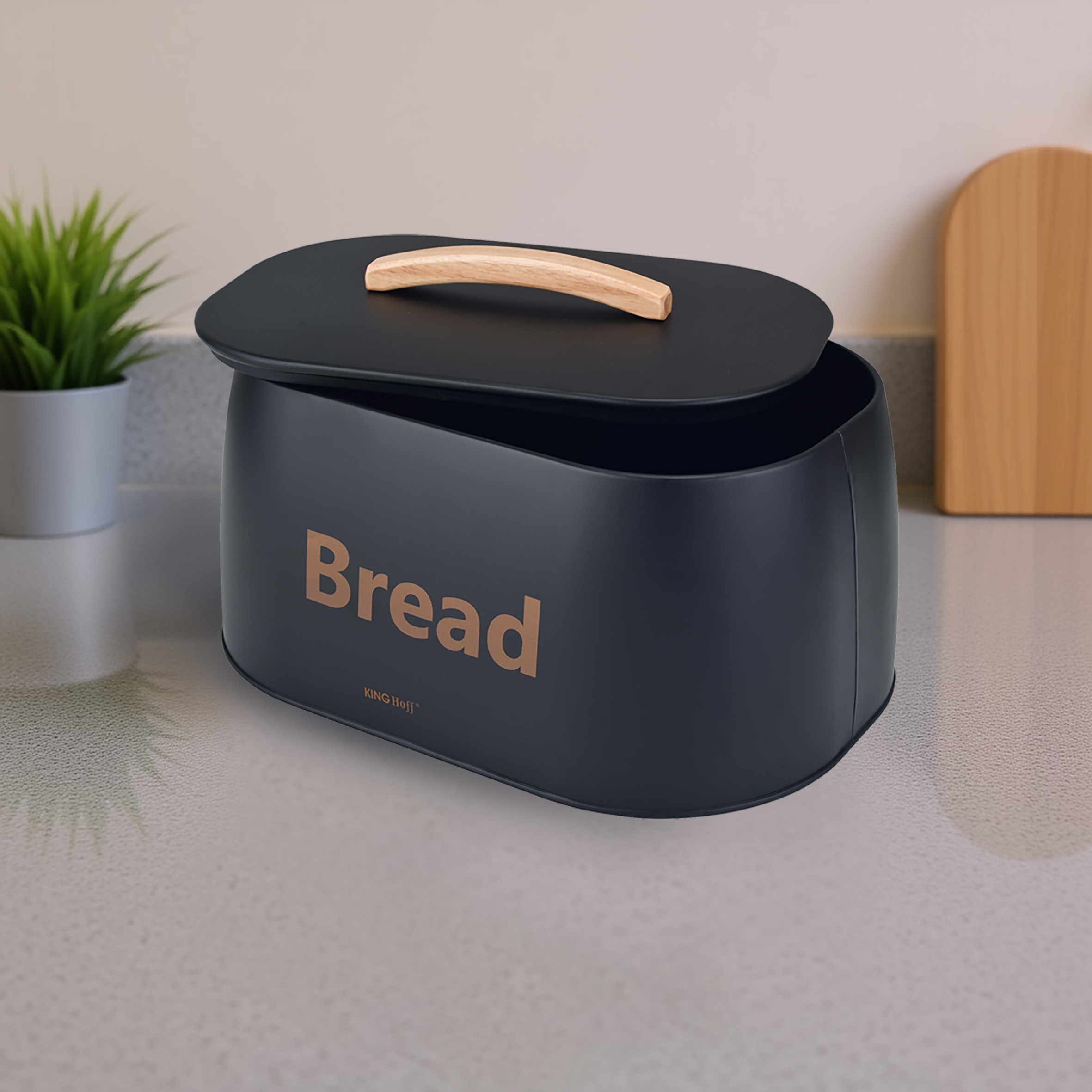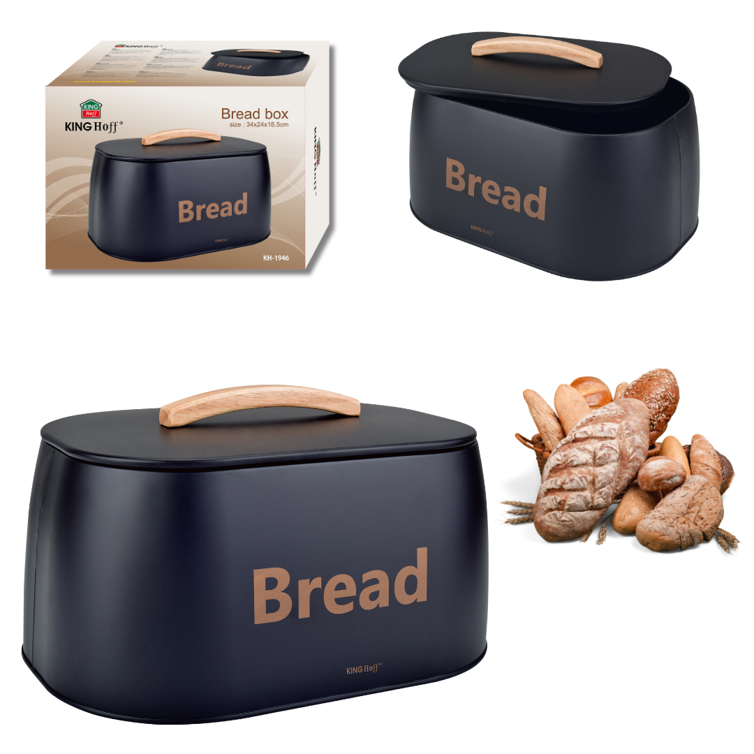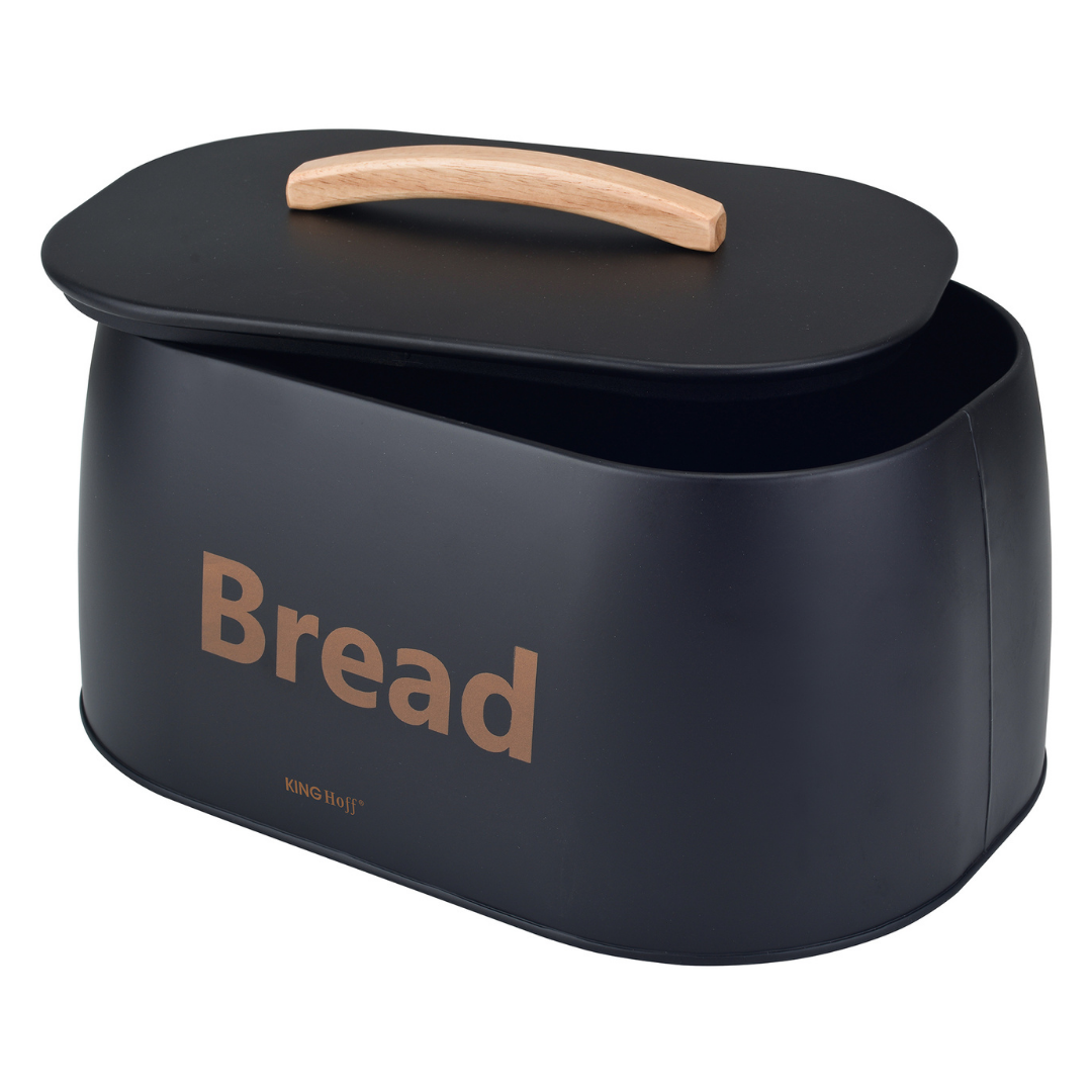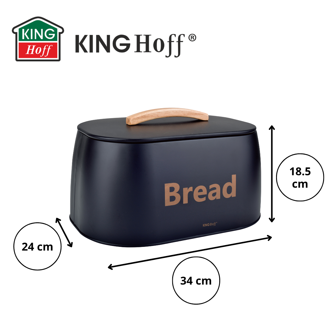 Nowoczesny chlebak marki KINGHOFF to elegancka i praktyczna propozycja dla osób ceniących porządek w kuchni. Wykonany z wytrzymałego metalu i wyposażony w solidny drewniany uchwyt, nie tylko pomaga w przechowywaniu pieczywa, ale również stanowi atrakcyjny element wystroju. Matowe wykończenie i kontrastowy napis Bread sprawiają, że chlebak idealnie wpisuje się w nowoczesne, skandynawskie lub loftowe wnętrza.