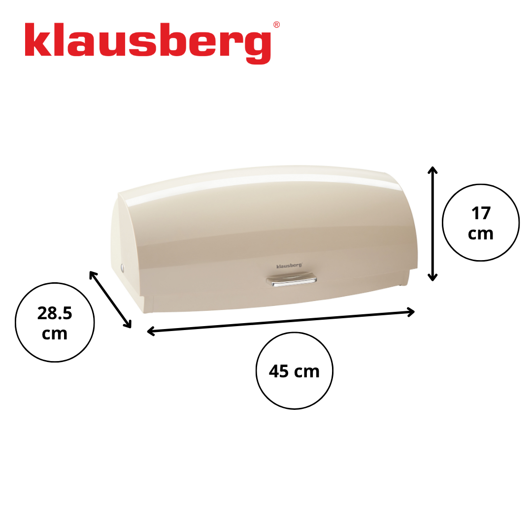 Beżowy chlebak marki KLAUSBERG to eleganckie i funkcjonalne rozwiązanie do przechowywania pieczywa. Korpus wykonany z metalu zapewnia trwałość, natomiast lekko zaokrąglona klapa została wykonana z polistyrenu (PS) – tworzywa odpornego na zarysowania, lekkiego i higienicznego. Całość zamknięta w subtelnej, kremowej tonacji sprawia, że chlebak idealnie wpasuje się w jasne i przytulne kuchenne aranżacje.