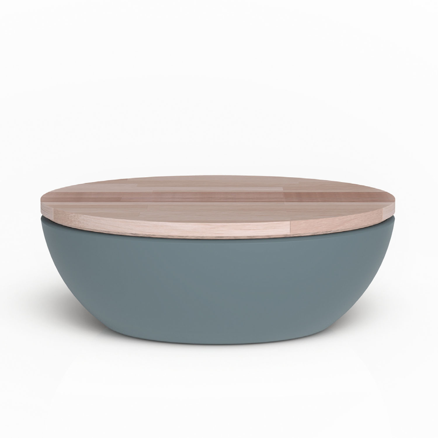 Chlebak w kolorze sky dust z kolekcji Pangea to kombinacja nowoczesnych technopolimerów z drewnem w postaci przykrywki wykonanej z litego drewna, będącej jednocześnie deską do krojenia. Natomiast, sam pojemnik powstał z kompozytu włókna szklanego, dzięki czemu jest odporny na pęknięcia. Sam pojemnik może być również użytkowany w kuchence mikrofalowej oraz myty w zmywarce. Trzeba jednak pamiętać, że jego powierzchnia może ulec zmatowieniu po wielu myciach, co nie podlega reklamacji. Produkt powstał we Włoszech.