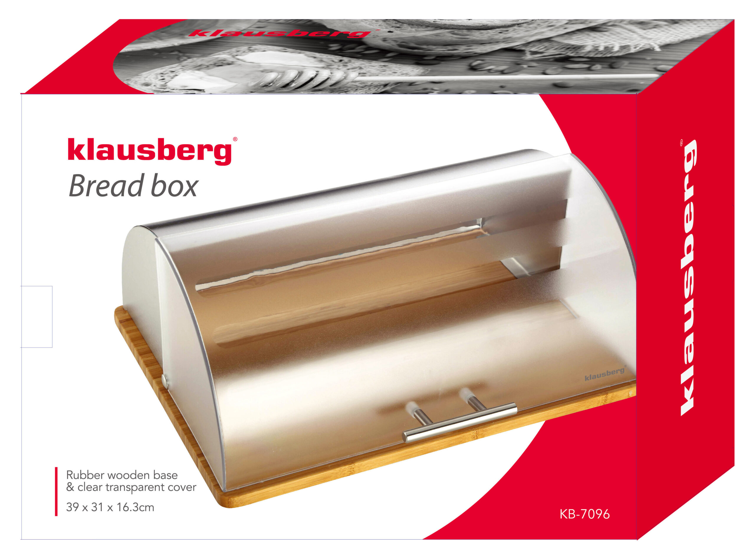 Praktyczny i stylowy chlebak z drewna, stali i akrylu Klausberg