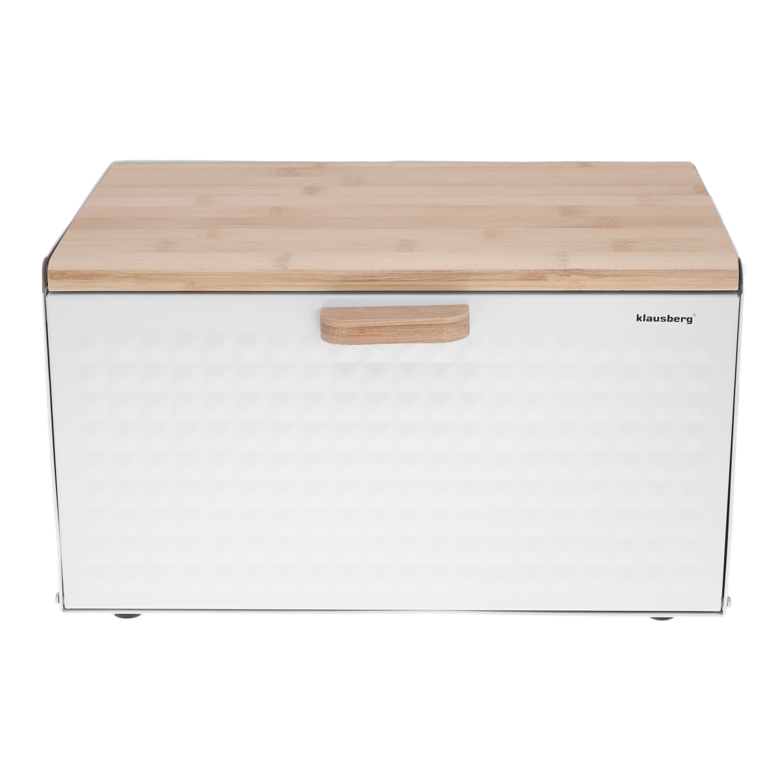Elegancki chlebak Klausberg w białym kolorze to połączenie funkcjonalności i stylu. Wykonany z solidnego metalu i naturalnego drewna bambusowego, zapewnia trwałość, higieniczne warunki przechowywania oraz łatwość w codziennym użytkowaniu. Jego prosty, nowoczesny design sprawia, że idealnie wpisuje się zarówno w klasyczne, jak i minimalistyczne kuchnie.