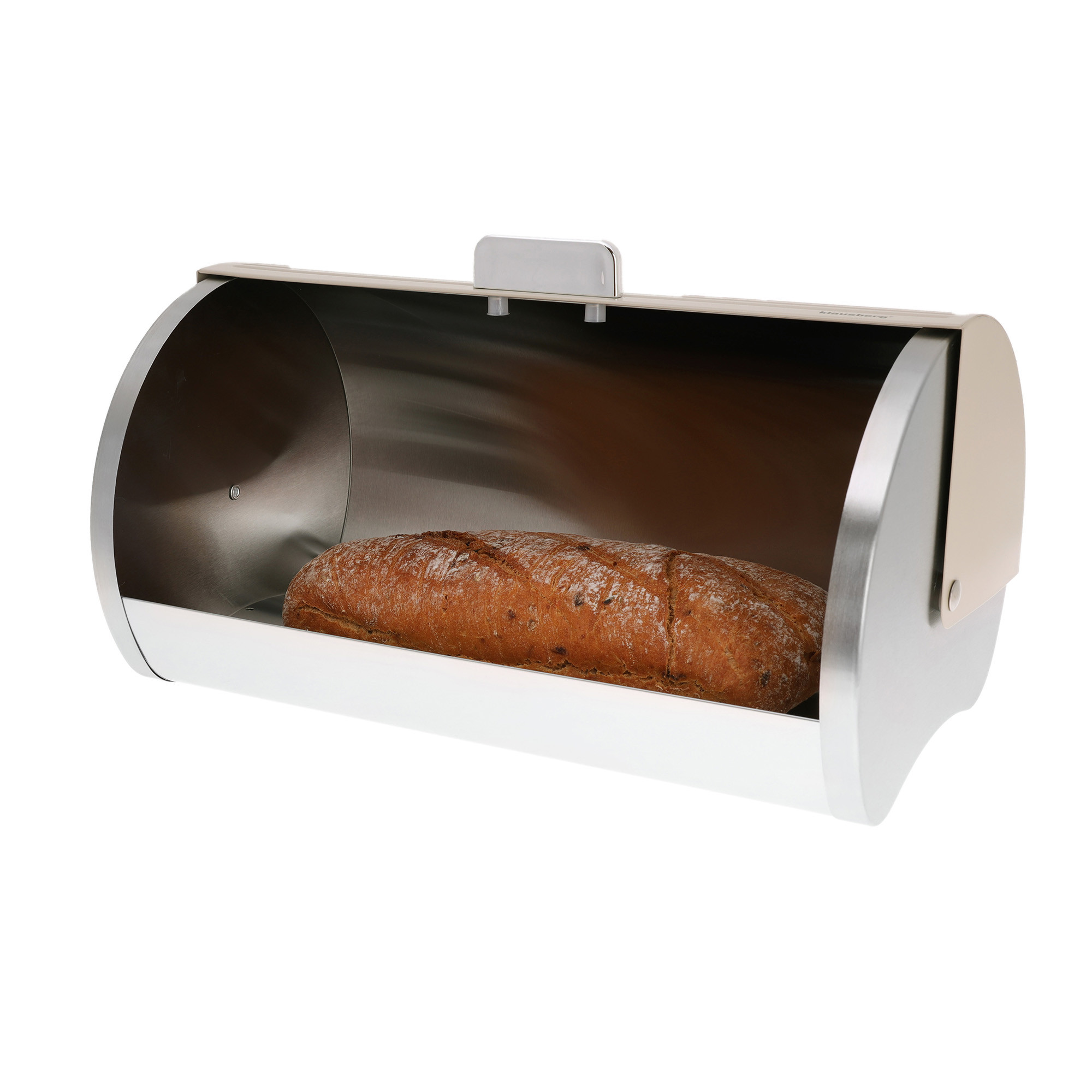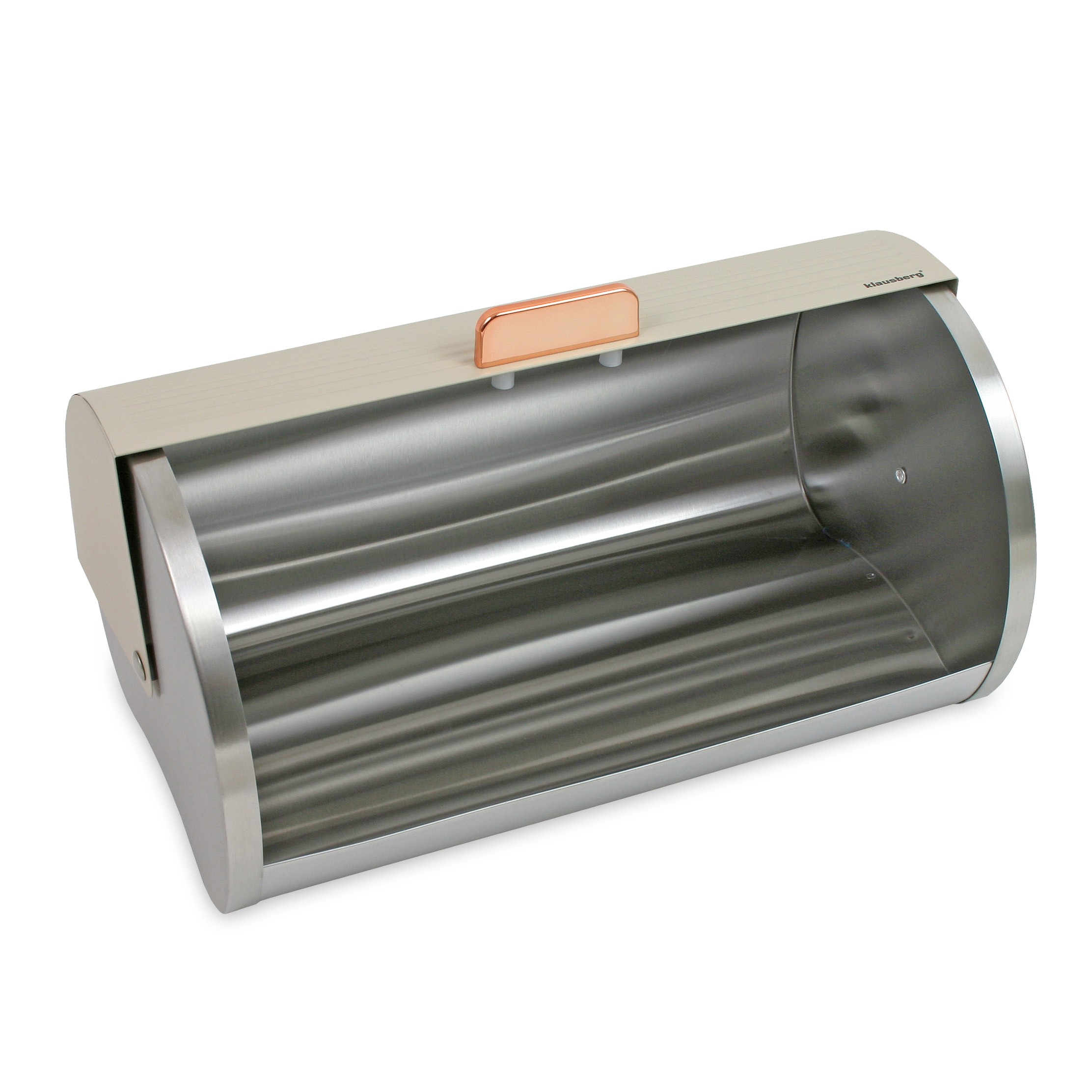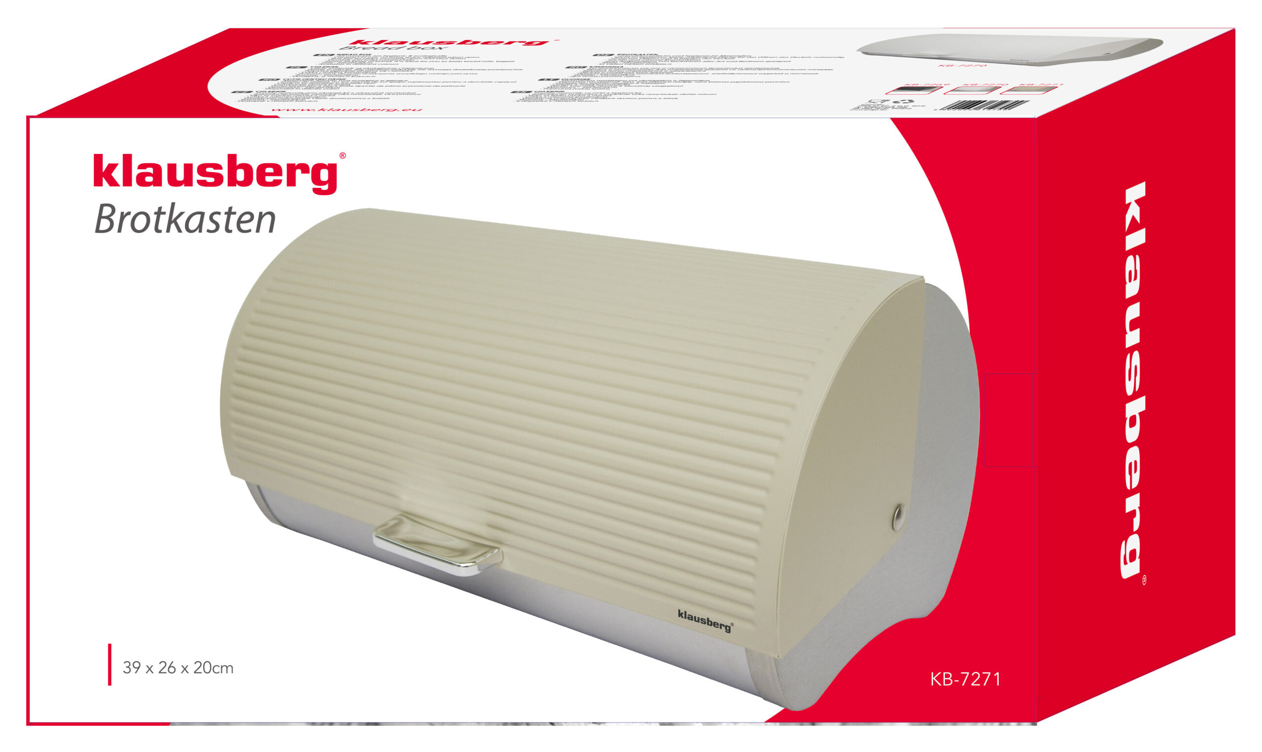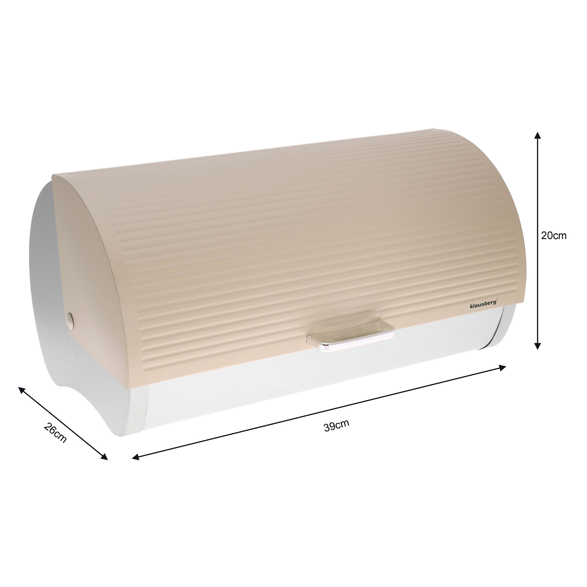 Duży chlebak Klausberg w eleganckim beżowym kolorze to połączenie funkcjonalności i nowoczesnego stylu. Wykonany ze stali węglowej pokrytej emalią, zapewnia trwałość i higieniczne przechowywanie pieczywa. Dzięki pokrywie typu roll top otwiera się płynnie i nie zajmuje dodatkowego miejsca, co czyni go praktycznym rozwiązaniem nawet do mniejszych kuchni.