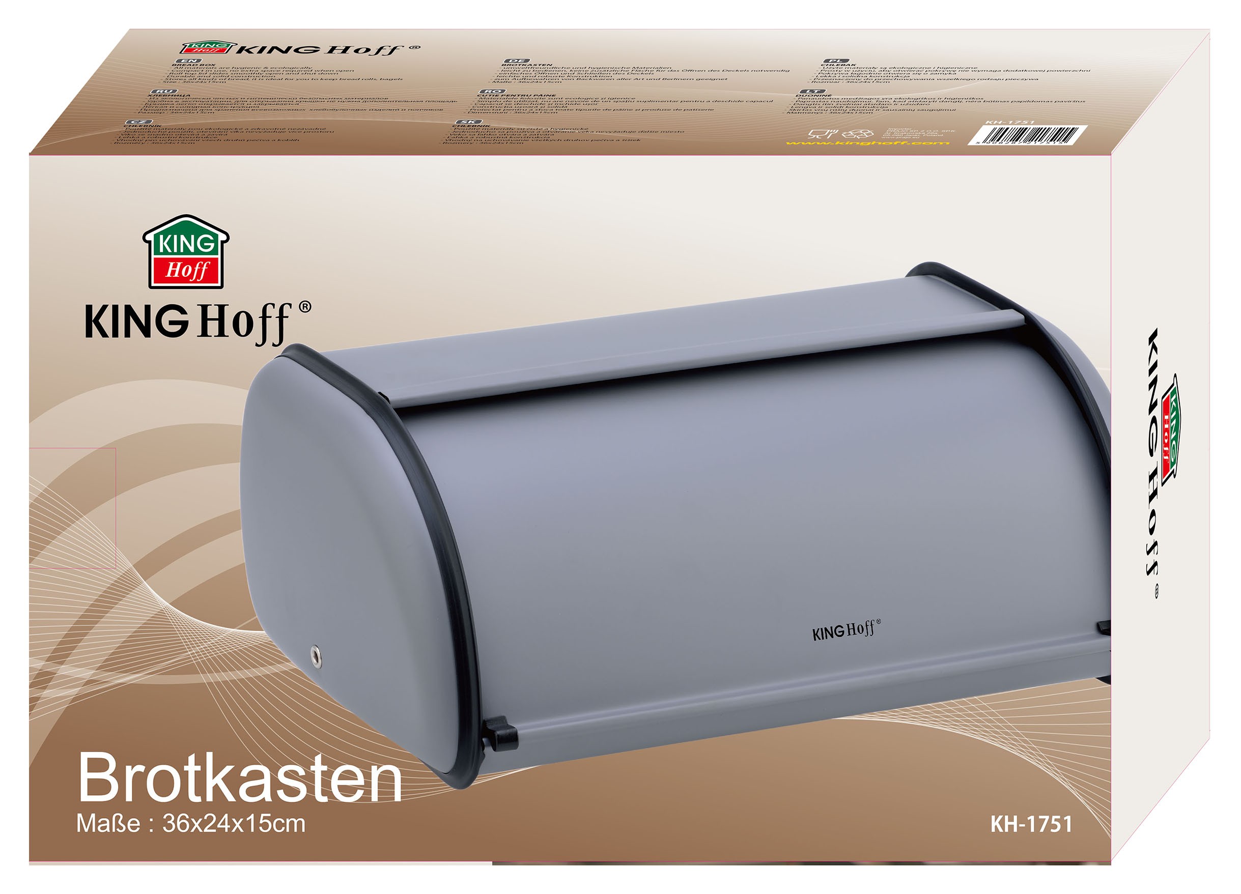 Szary chlebak KINGHoff to nie tylko praktyczne rozwiązanie do przechowywania pieczywa, ale również stylowy element wystroju kuchni.