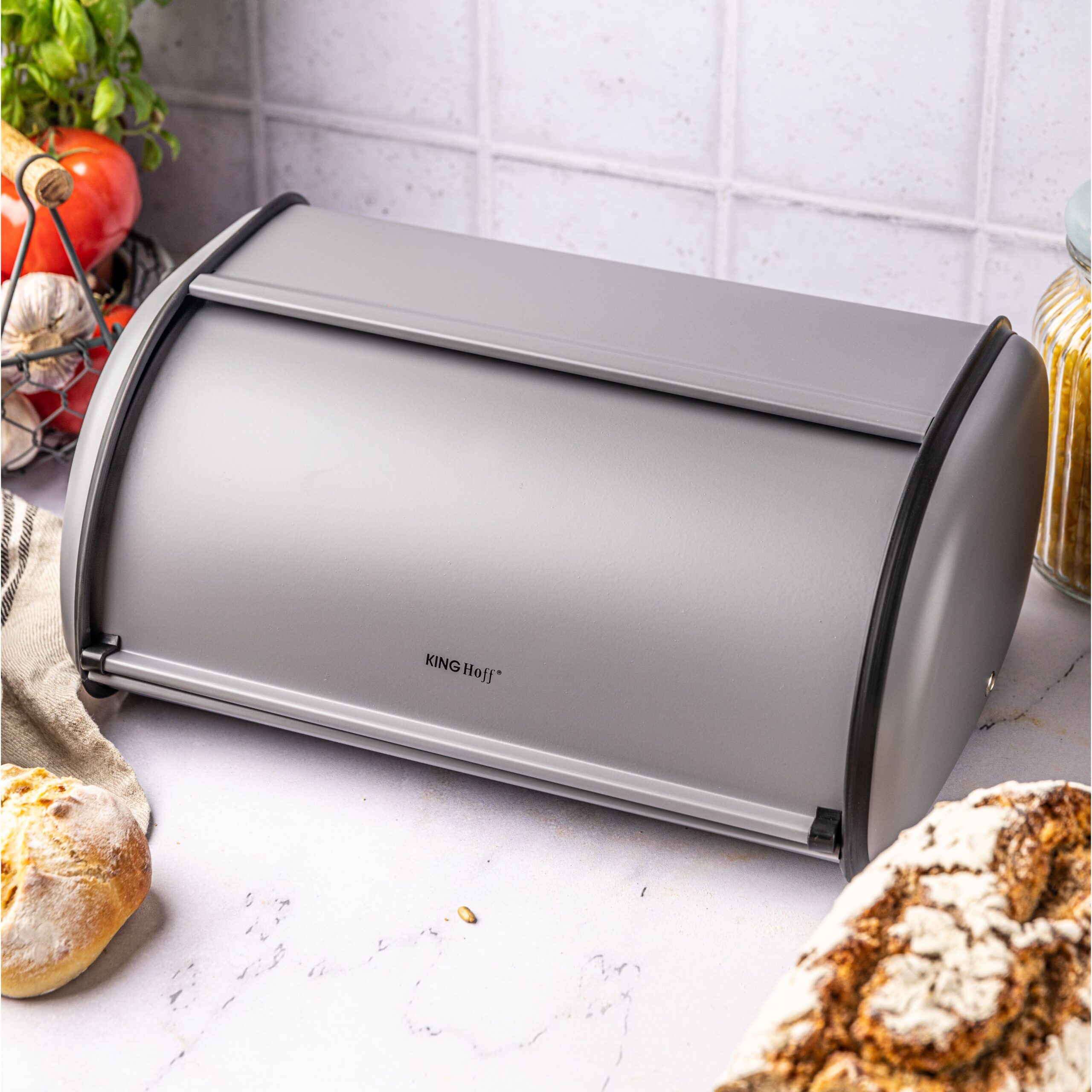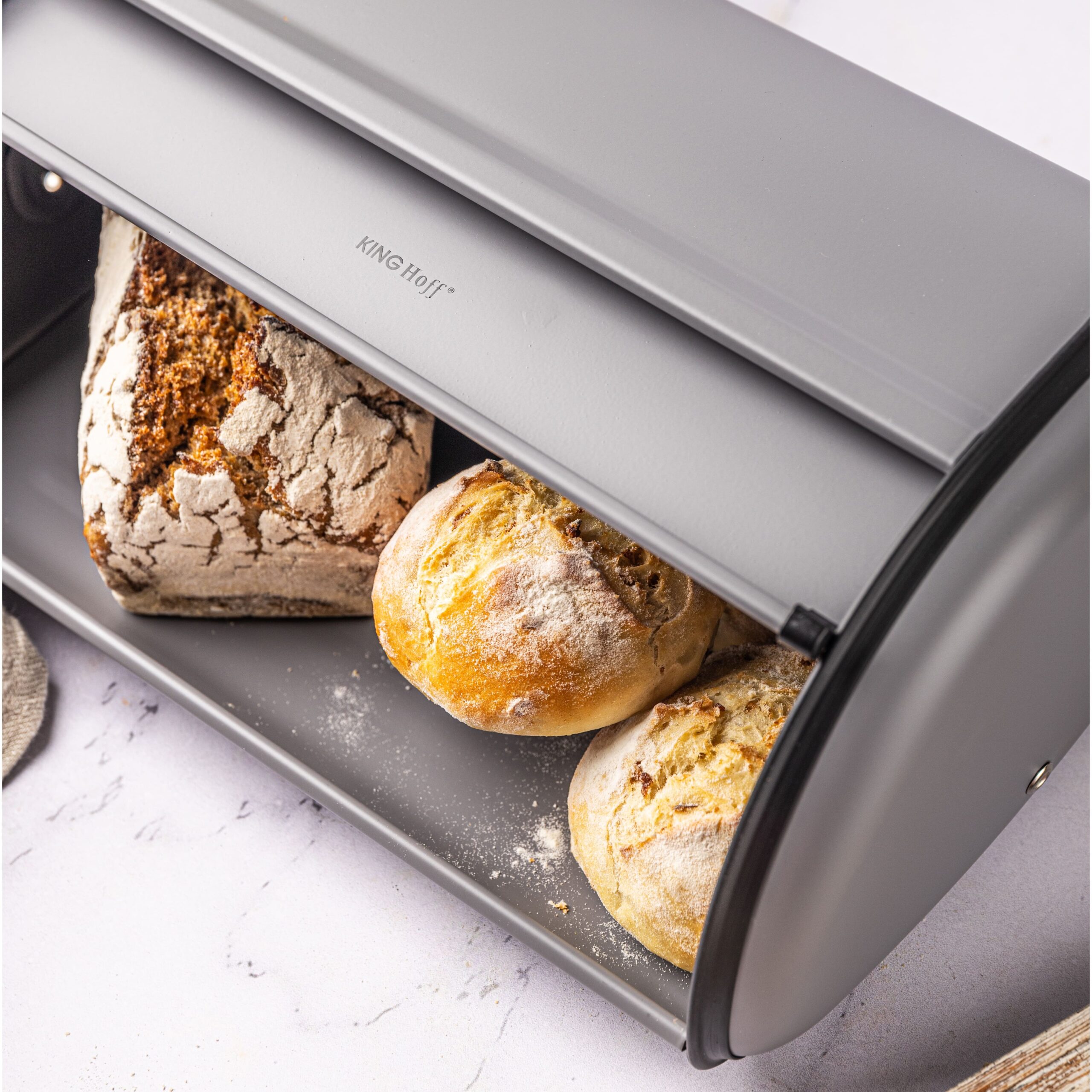 Szary chlebak stalowy KINGHoff – nowoczesne i funkcjonalne przechowywanie pieczywa