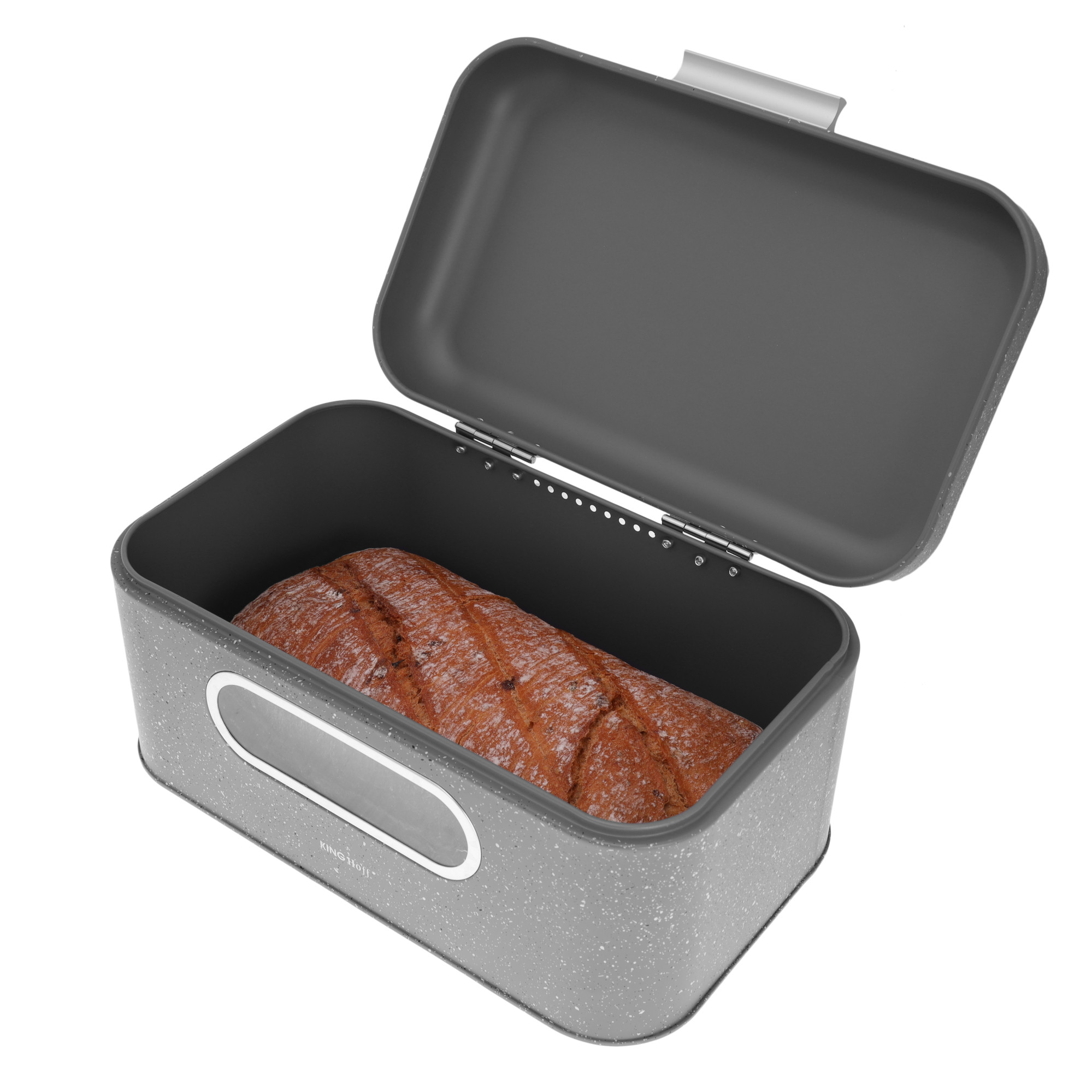 Szary stalowy chlebak KINGHoff w stylu marmurkowym – nowoczesny i praktyczny dodatek do kuchni