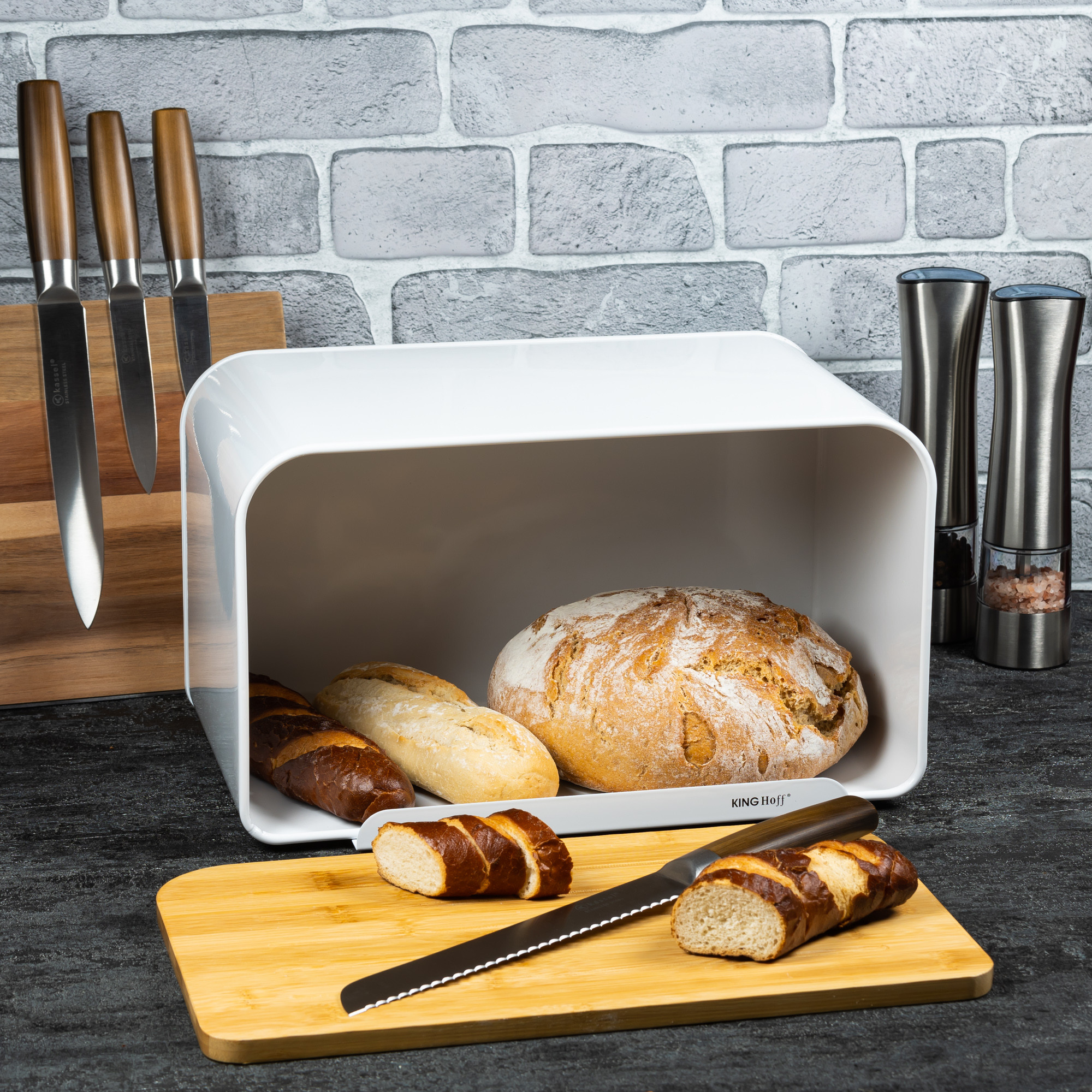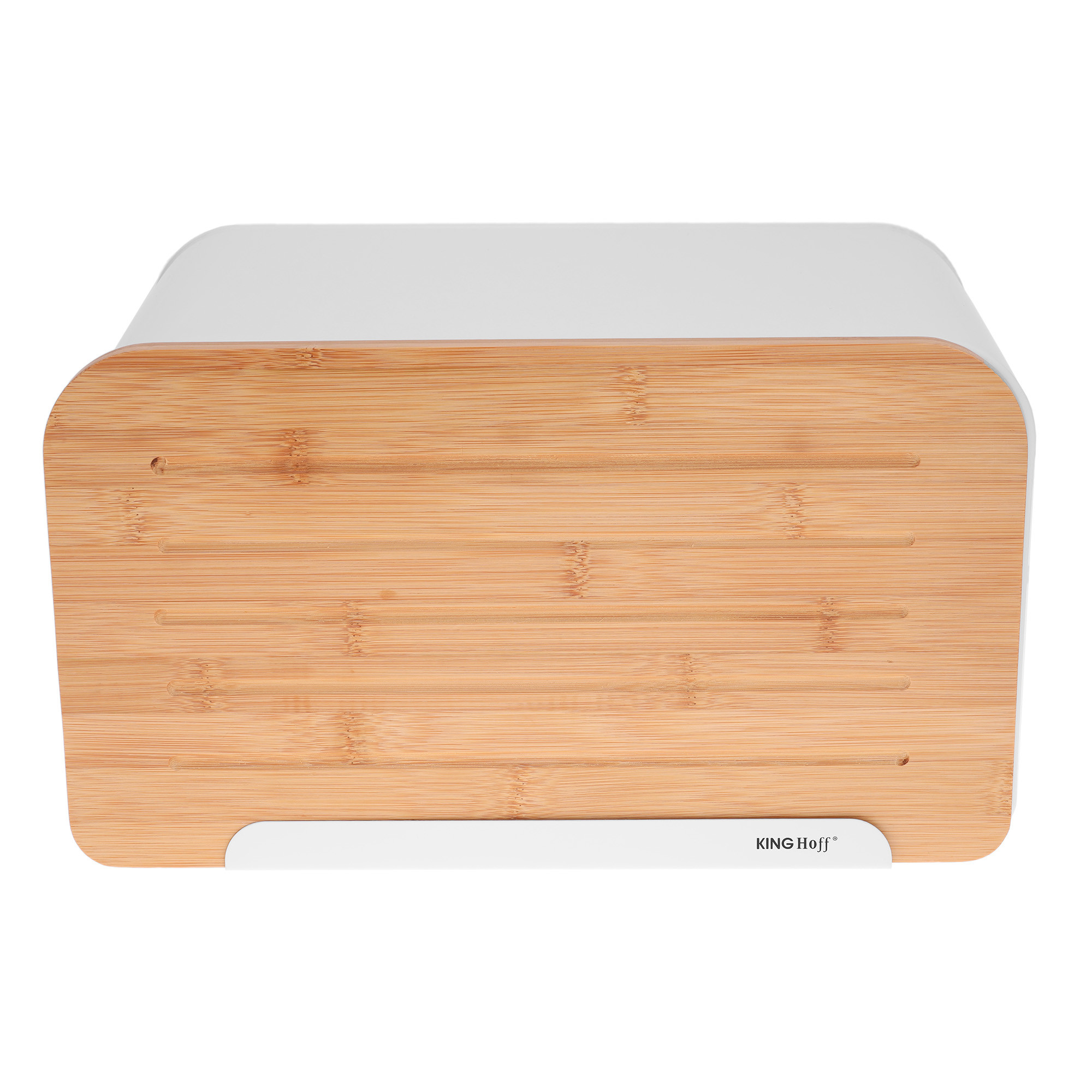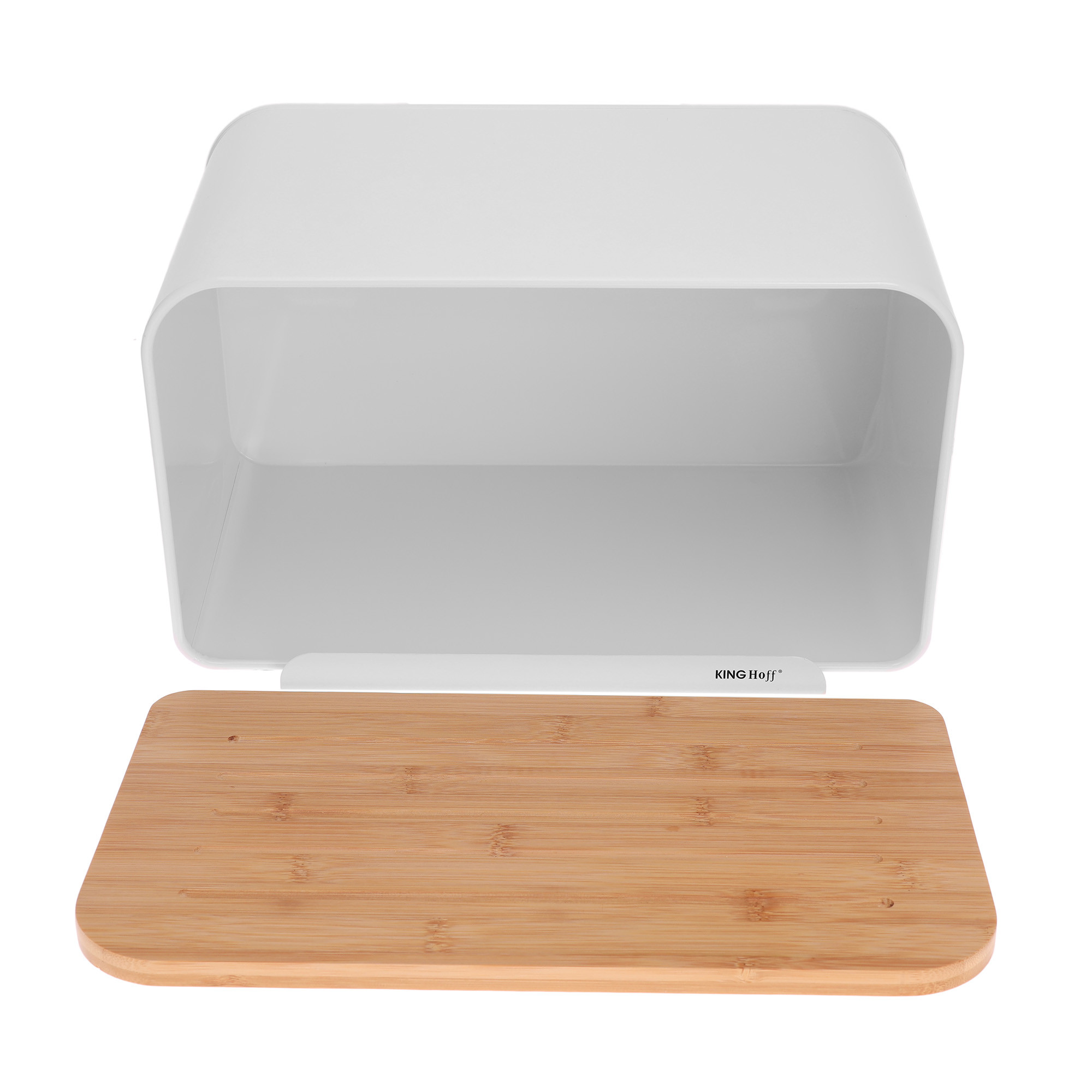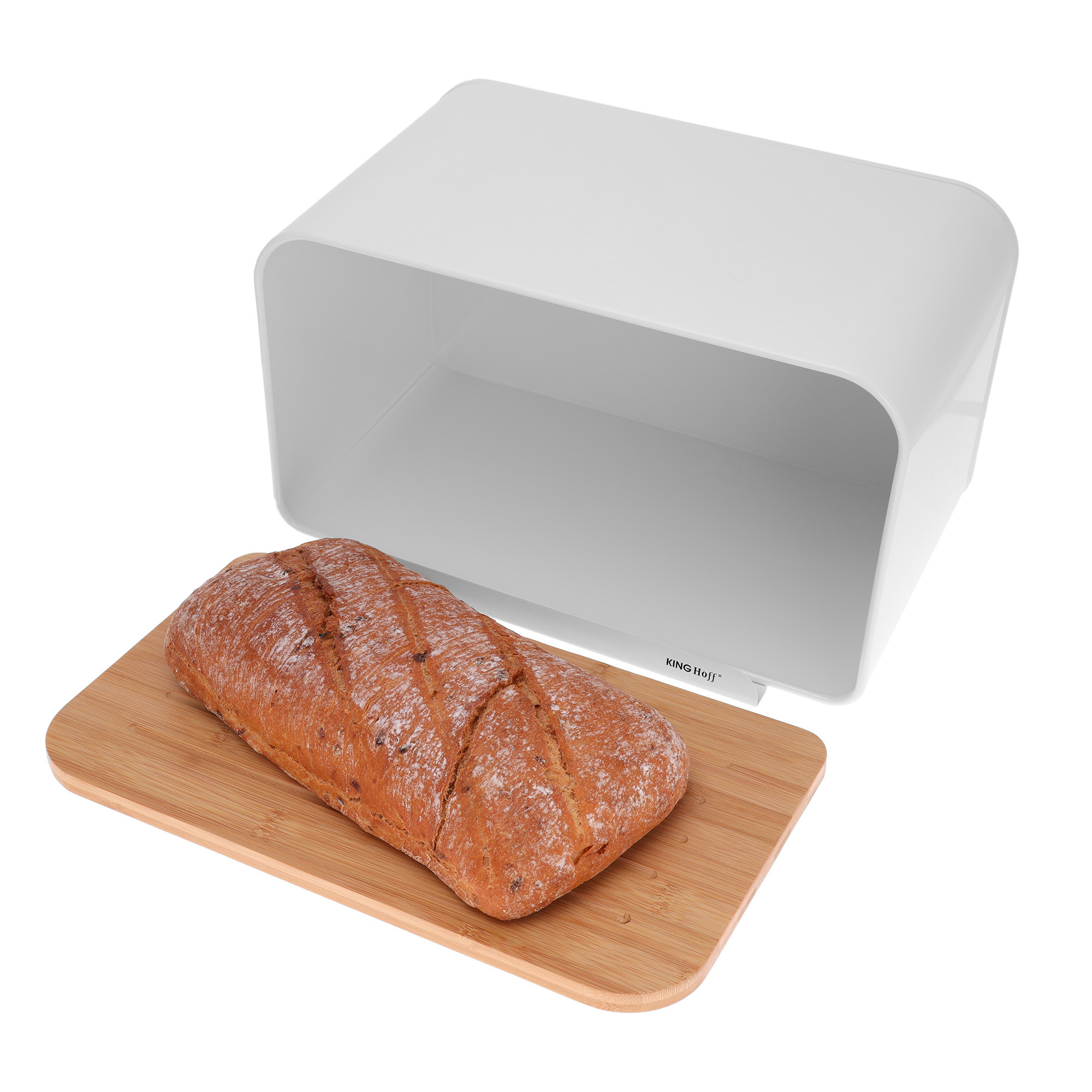 Praktyczny i stylowy chlebak z deską bambusową Kinghoff – biały