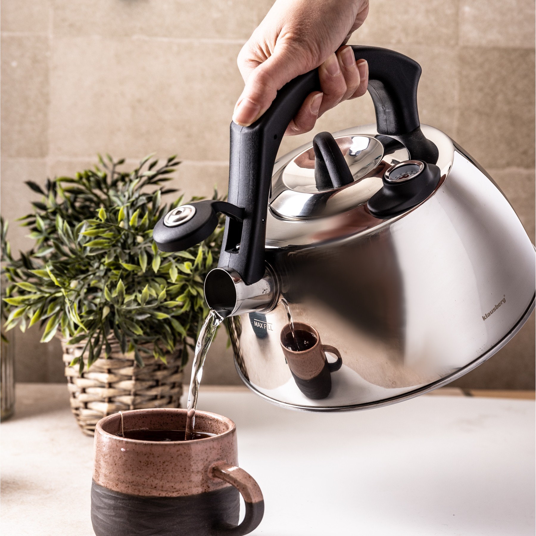 Czajnik Klausberg ze stylowym srebrnym wykończeniem i praktycznym termometrem to połączenie estetyki i wygody, które ułatwi przygotowywanie ulubionych napojów.