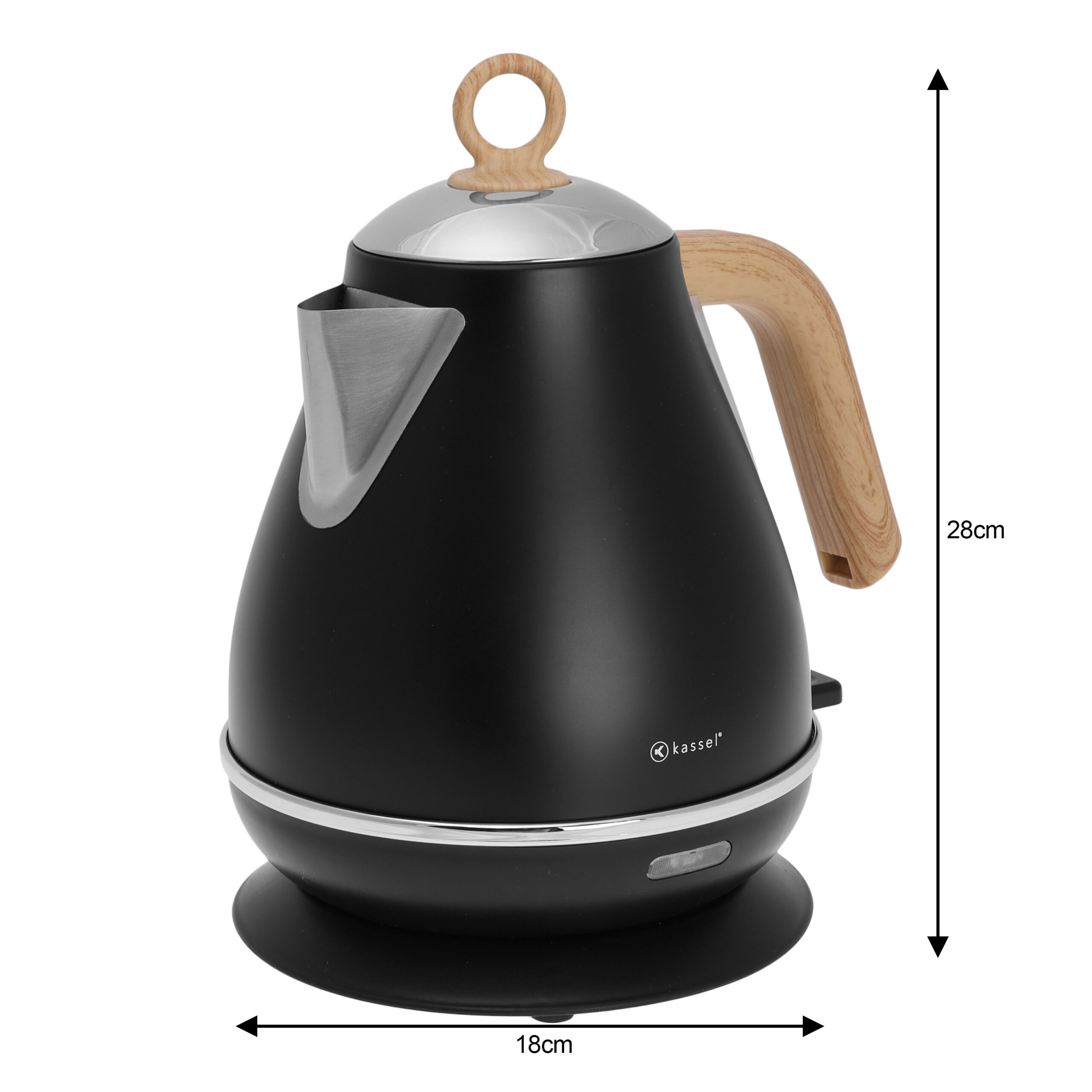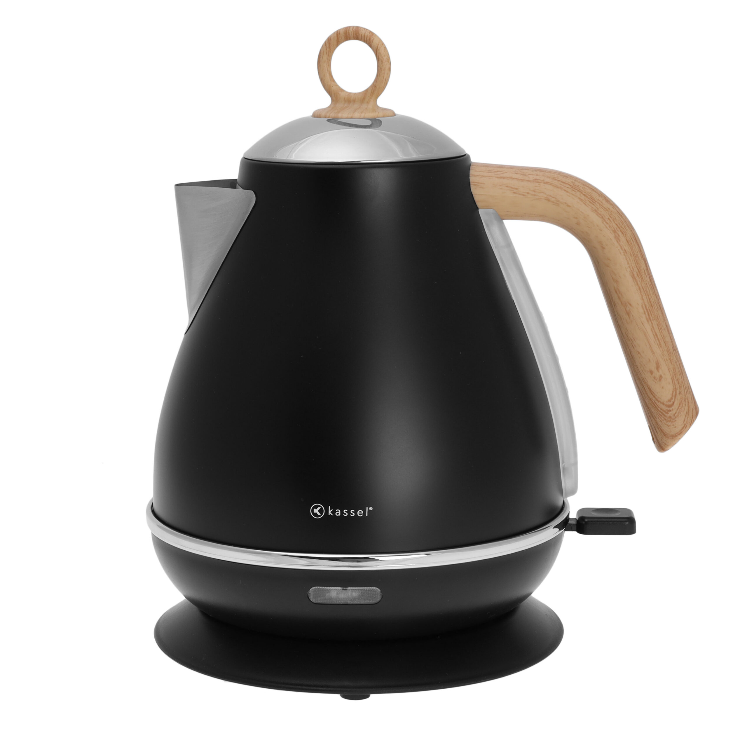 Czajnik elektryczny Kassel o pojemności 1,7 litra to stylowe i praktyczne urządzenie, które doskonale wpisze się w wystrój nowoczesnej kuchni. Matowa czerń w połączeniu z drewnopodobnym uchwytem i pierścieniowym wykończeniem pokrywy tworzy elegancki, minimalistyczny wygląd. Dzięki szybkiemu podgrzewaniu wody, ergonomicznej konstrukcji i wygodnej obsłudze, czajnik ten stanie się niezastąpionym elementem codziennego wyposażenia.