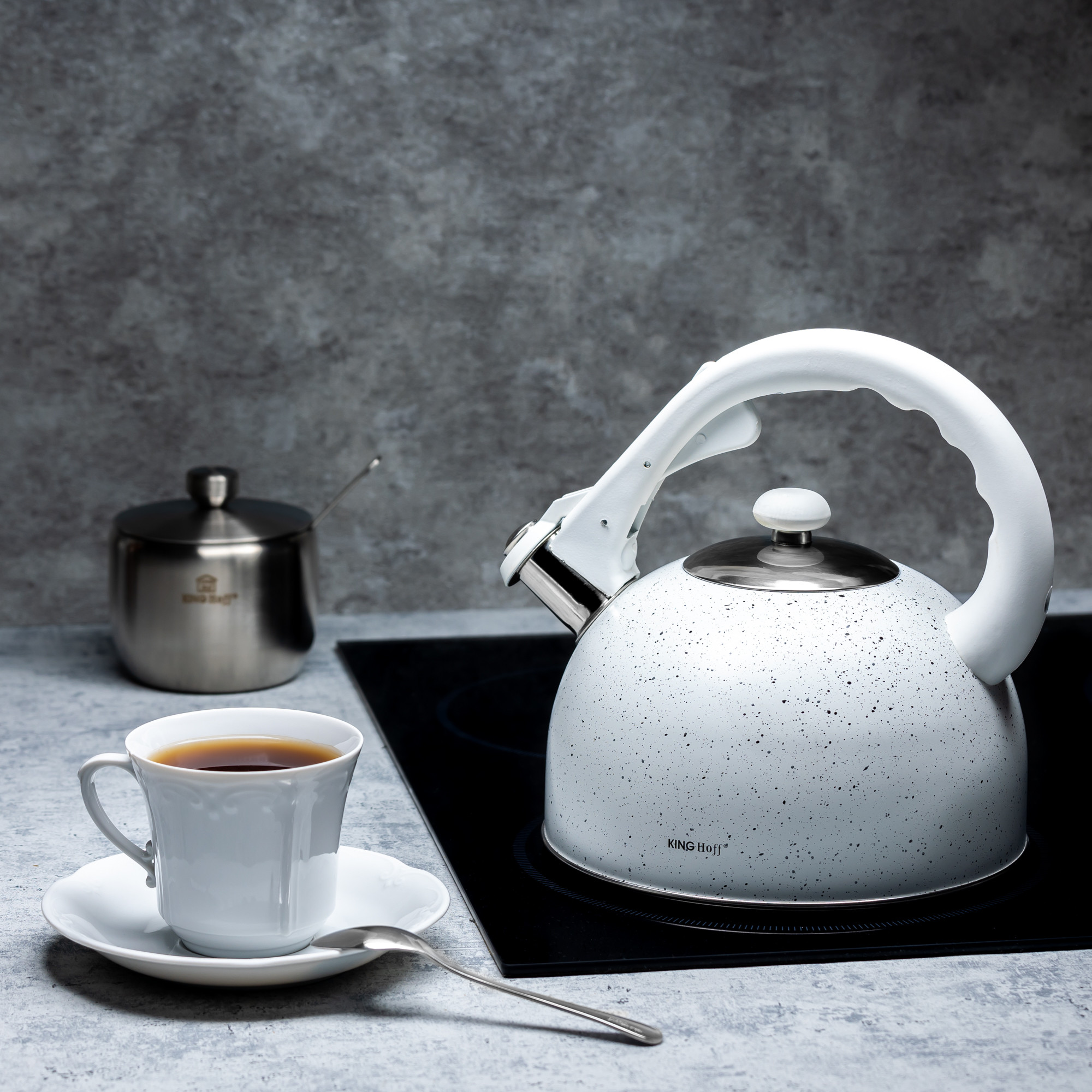 Czajnik KINGHoff KH-1407 to doskonałe połączenie nowoczesnego wyglądu i codziennej funkcjonalności. Wykończony w efektownym białym marmurku, świetnie komponuje się z jasnymi wnętrzami i dodaje im świeżości. Wykonany z trwałej stali nierdzewnej i wyposażony w ergonomiczny uchwyt, czajnik ten zapewnia komfort użytkowania i niezawodność przez lata.