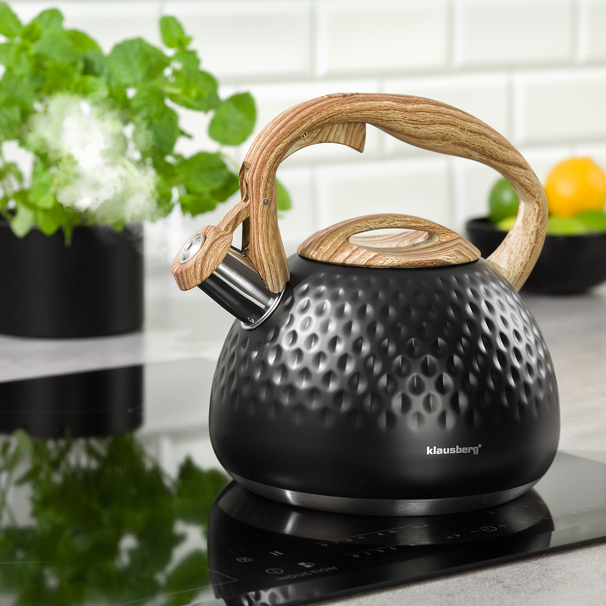 Czajnik tradycyjny Klausberg 2,8L czarny z uchwytem drewnopodobnym – elegancja i energooszczędność