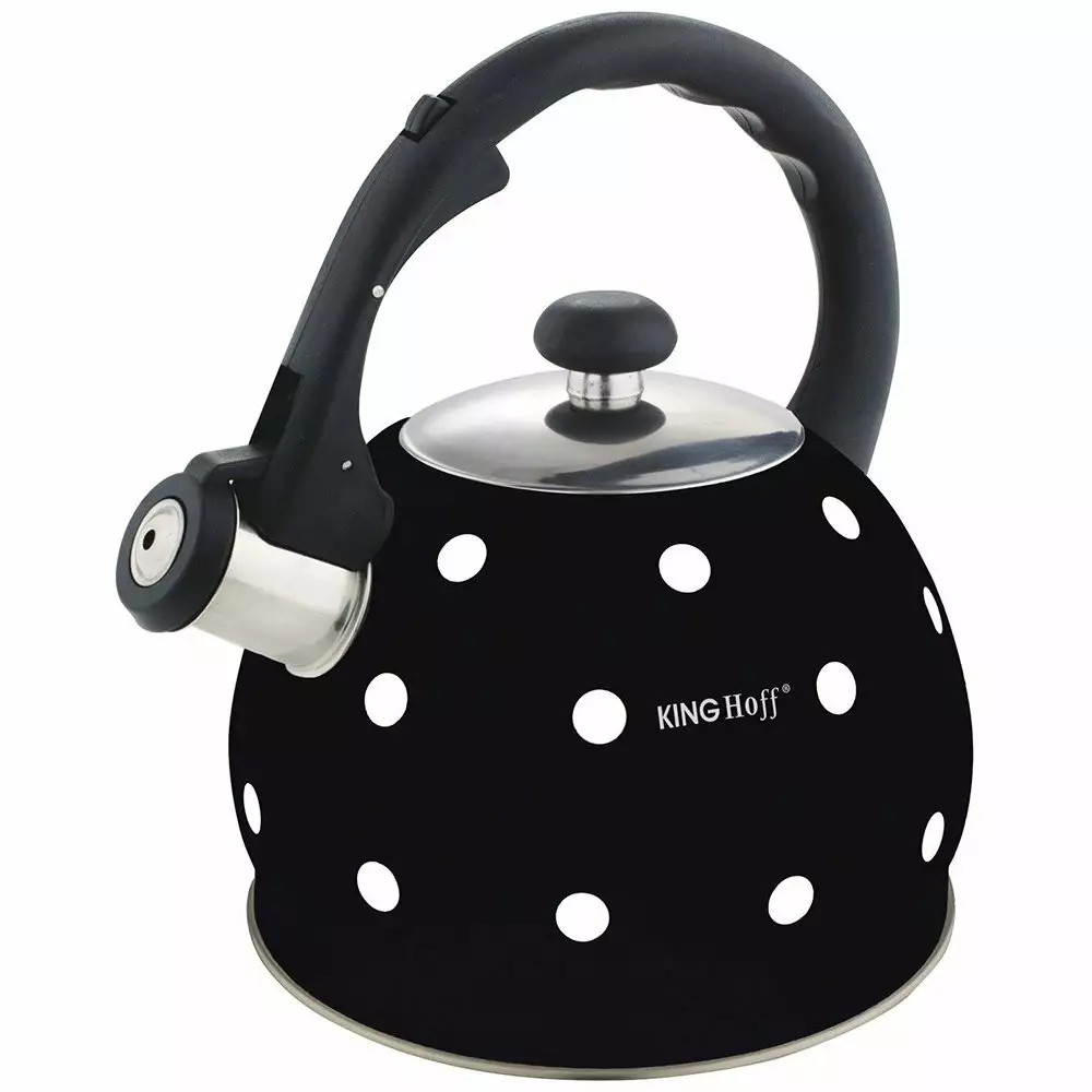 Stylowy czajnik stalowy o pojemności 2 litrów to praktyczne i estetyczne wyposażenie każdej kuchni. Klasyczna forma w nowoczesnym wydaniu, czarna kolorystyka w kropki oraz wygodna obsługa czynią go idealnym wyborem zarówno do codziennego użytku, jak i podczas spotkań przy herbacie.
