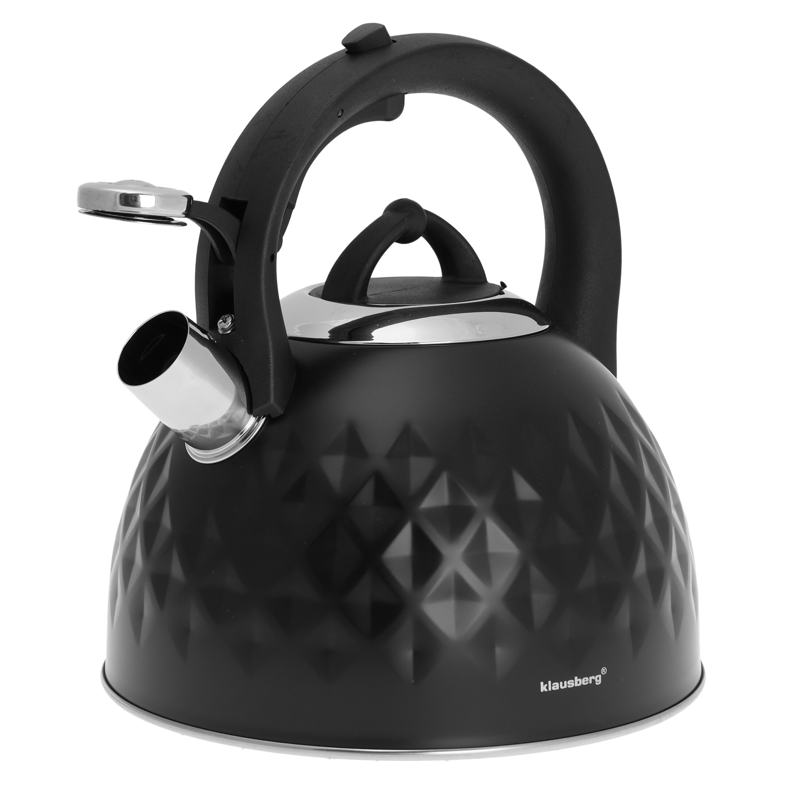 Czajnik Klausberg 3L w czarnym, satynowym wykończeniu z diamentowym tłoczeniem to idealne połączenie stylu i wygody, które uzupełni wystrój każdej kuchni.