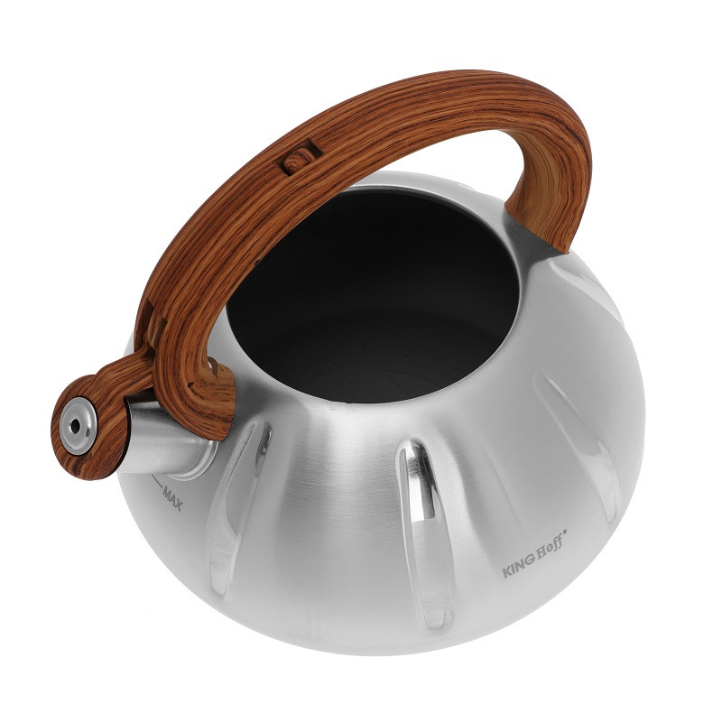 Czajnik KINGHoff KH-3291 to doskonałe połączenie prostoty, trwałości i eleganckiego wyglądu. Wykonany z wysokiej jakości stali nierdzewnej, z ozdobnym uchwytem w kolorze drewna, wprowadza do kuchni nowoczesny akcent bez rezygnacji z klasycznej formy. Duża pojemność 3 litry sprawia, że idealnie sprawdzi się w codziennym użytkowaniu, również w większych gospodarstwach domowych.