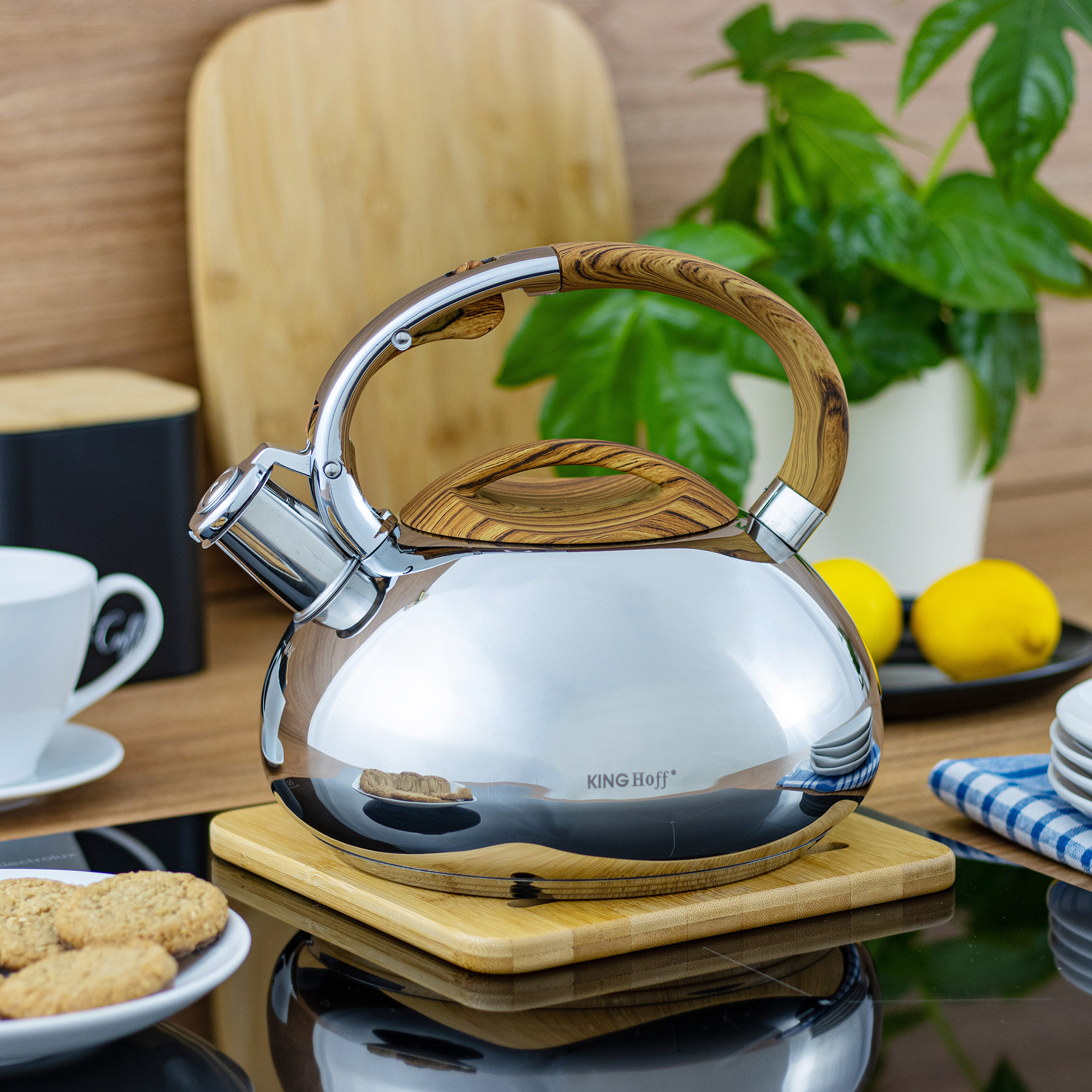 Czajnik KINGHoff KH-3274 to propozycja dla osób, które szukają połączenia nowoczesnej formy, wygody użytkowania i stylowego wyglądu. Wykonany z wysokiej jakości stali nierdzewnej, zachwyca połyskującym wykończeniem i eleganckim uchwytem w kolorze drewna. Sprawdzi się idealnie w codziennym użytkowaniu, pasując do każdej kuchni – klasycznej lub nowoczesnej.