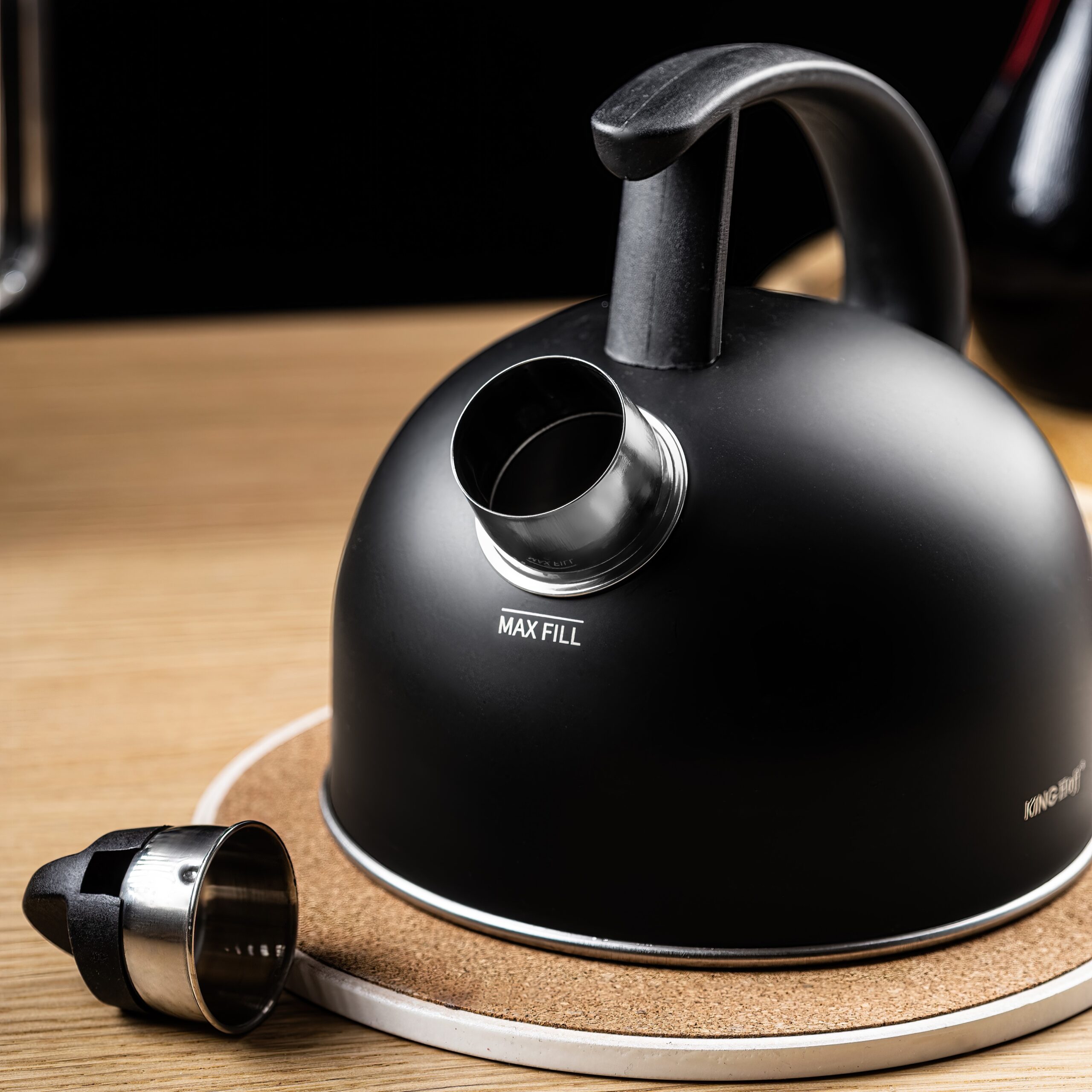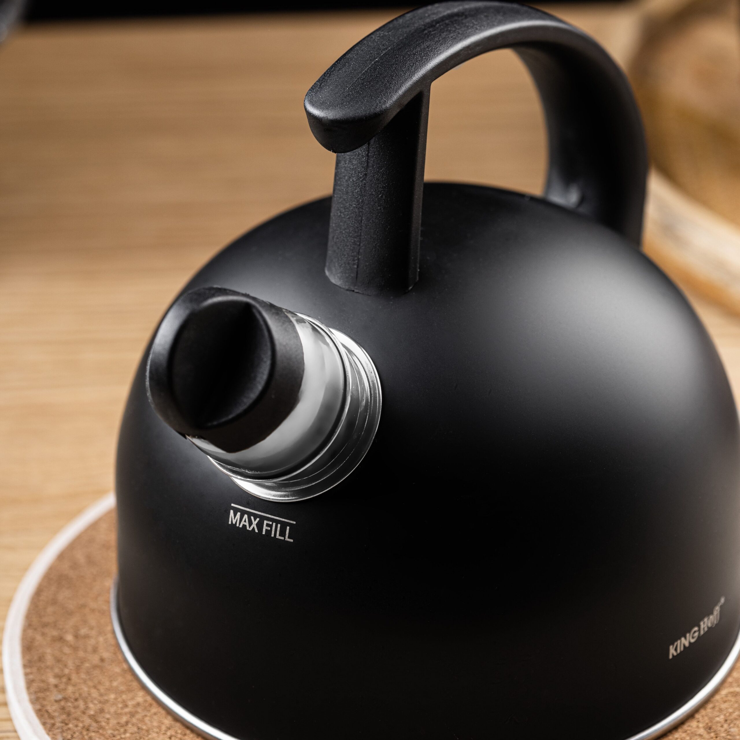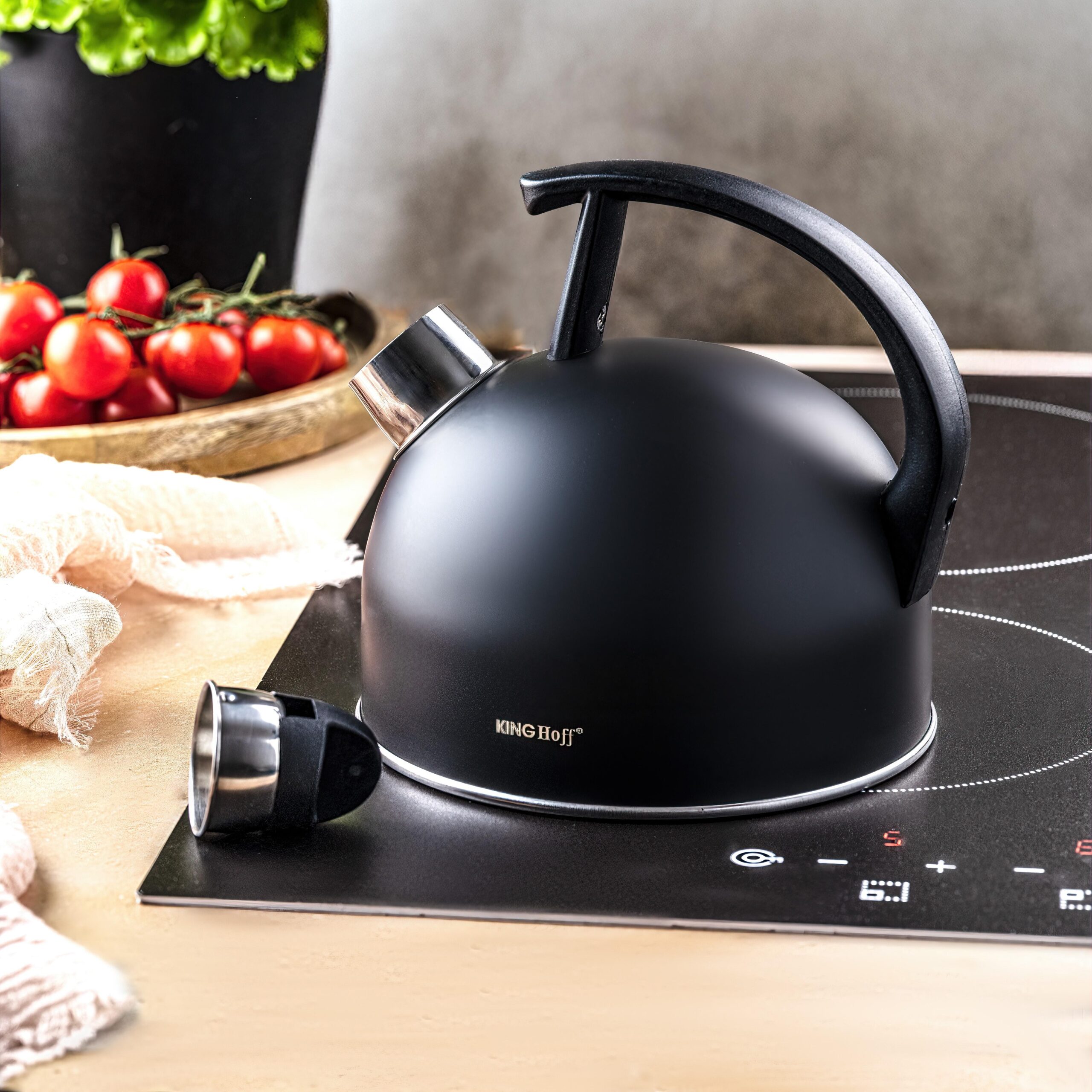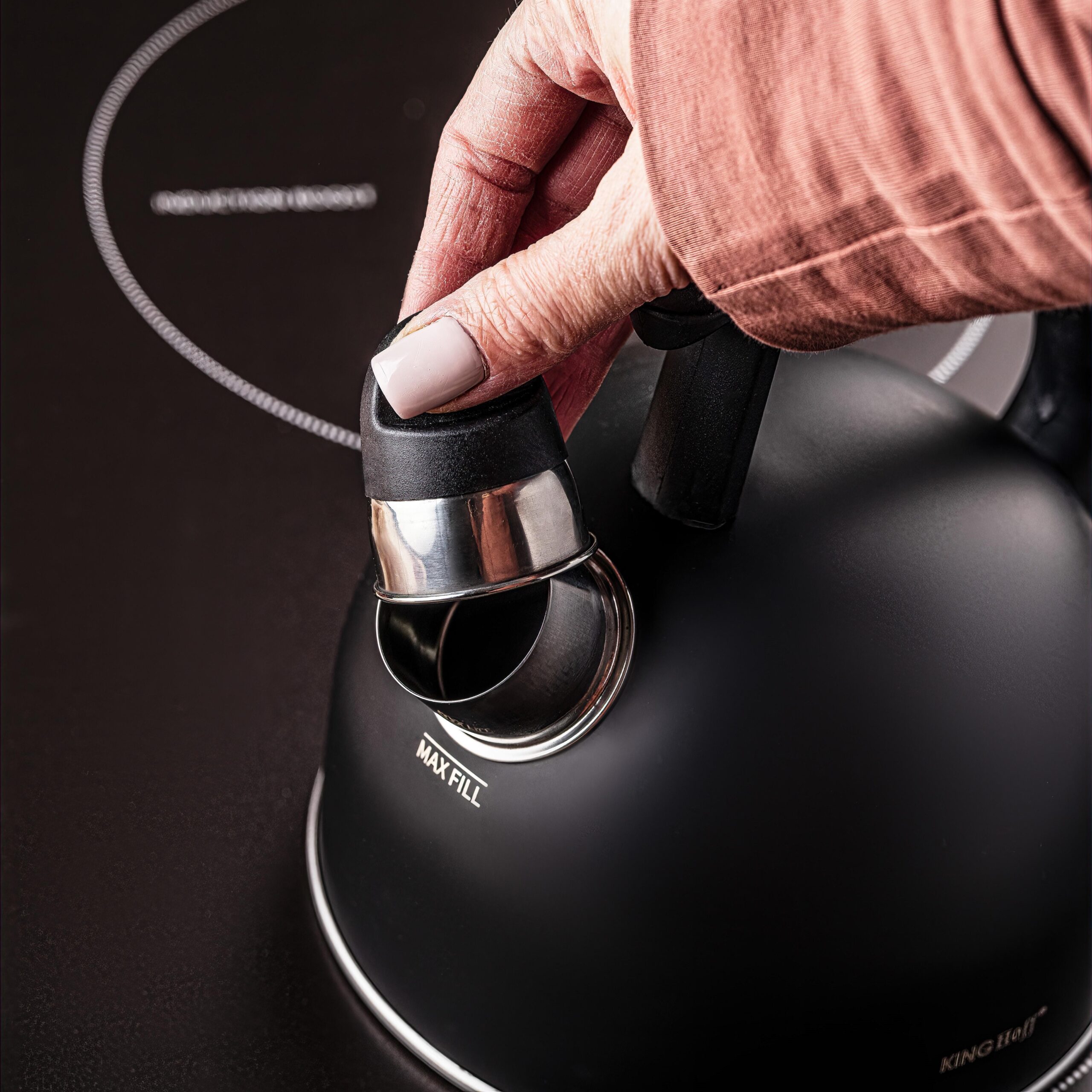 Wzbogać swoją kuchnię o elegancki czajnik KINGHoff KH-1897 w matowej czerni – połączenie klasycznego stylu i funkcjonalności, idealne do codziennego użytku. Wykonany z wysokiej jakości stali nierdzewnej, zapewnia trwałość, bezpieczeństwo i estetykę przez długie lata.