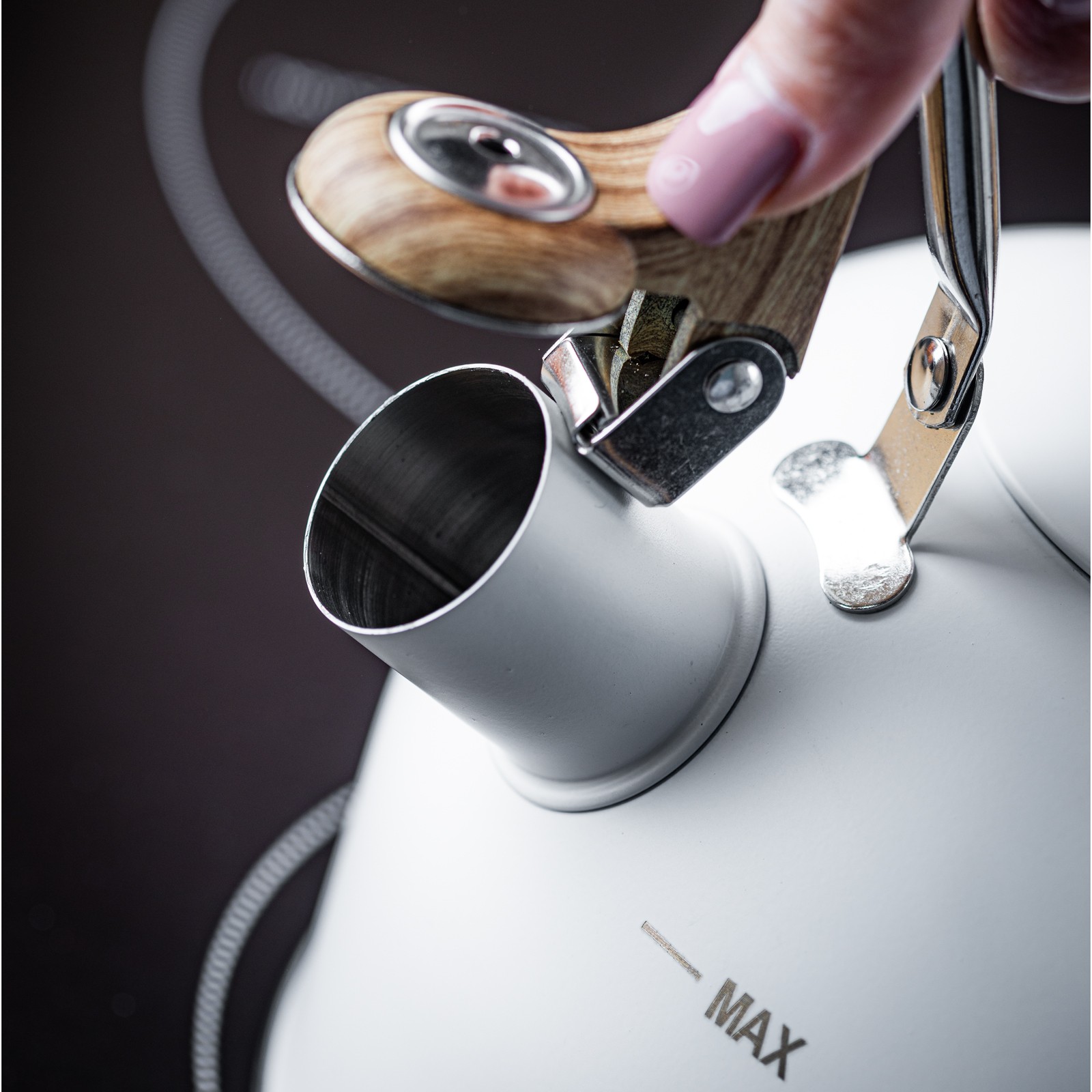 Zaprojektowany z myślą o prostocie użytkowania, czajnik posiada składany, ergonomiczny uchwyt, który nie tylko zapewnia komfort trzymania, ale również ułatwia przechowywanie. Idealna pojemność użytkowa 1,8 l (pojemność całkowita 2,5 l) pozwala na przygotowanie odpowiedniej ilości wody do herbaty, kawy lub innych napojów.