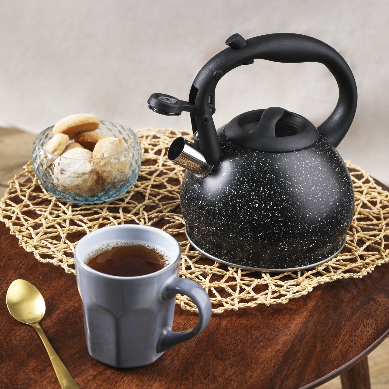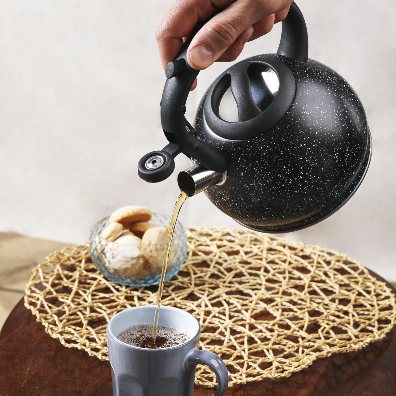Czajnik KINGHoff KH-1634 to kompaktowe i stylowe rozwiązanie łączące funkcję tradycyjnego czajnika z praktycznym zaparzaczem. Dzięki eleganckiemu wykończeniu w czarny marmurek i solidnej konstrukcji ze stali nierdzewnej, świetnie sprawdzi się w każdej kuchni. Doskonały do przygotowywania zarówno wrzątku, jak i świeżych naparów z herbaty czy ziół.
