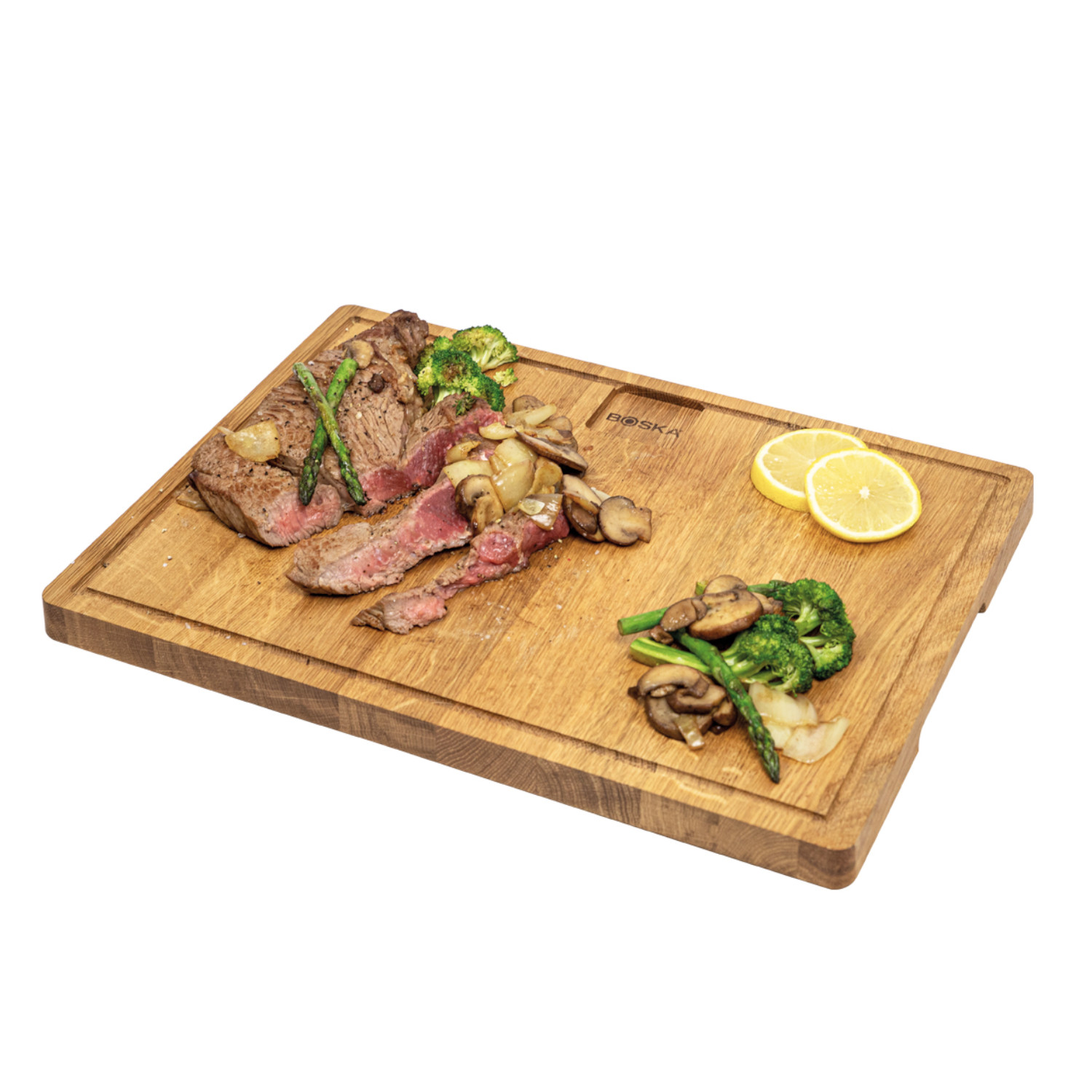 Deska do serwowania Friends L to deska dla smakoszy-estetów! Deska sprawdzi się zarówno do podawania przekąsek, jak i do serwowania steków, burgerów i innych dań. To deska dla smakoszy-estetów, dla których smak jest tak samo ważny jak podanie. A nic tak nie wyeksponuje serwowanej potrawy jak naturalne, dębowe drewno. Grubość deski to aż 2 cm, na bokach deski znajdują się wgłębienia, które ułatwiają jej przenoszenie. Na obwodzie deski jest żłobienie – poręczny rowek, który zbiera okruchy i soki. To z pewnością pozwoli Ci zaoszczędzić trochę czasu na sprzątaniu! Na tej desce jedzenie będzie wyglądać jeszcze bardziej smacznie. Idealnie nadaje się na spotkania przy grillu. Deski można użyć zamiast talerza do podania steków, czy grillowanych warzyw. Deska dostępna jest w 3 rozmiarach: S, M, i L. Przed pierwszym użyciem deskę należy solidnie naoliwić, pozwolić by drewno chłonęło olej przez kilka dni. Potem czynność należy powtarzać co jakiś czas. Deskę myć ręcznie z dodatkiem łagodnych detergentów. Opakowanie: brak, etykieta w postaci papierowej opaski.