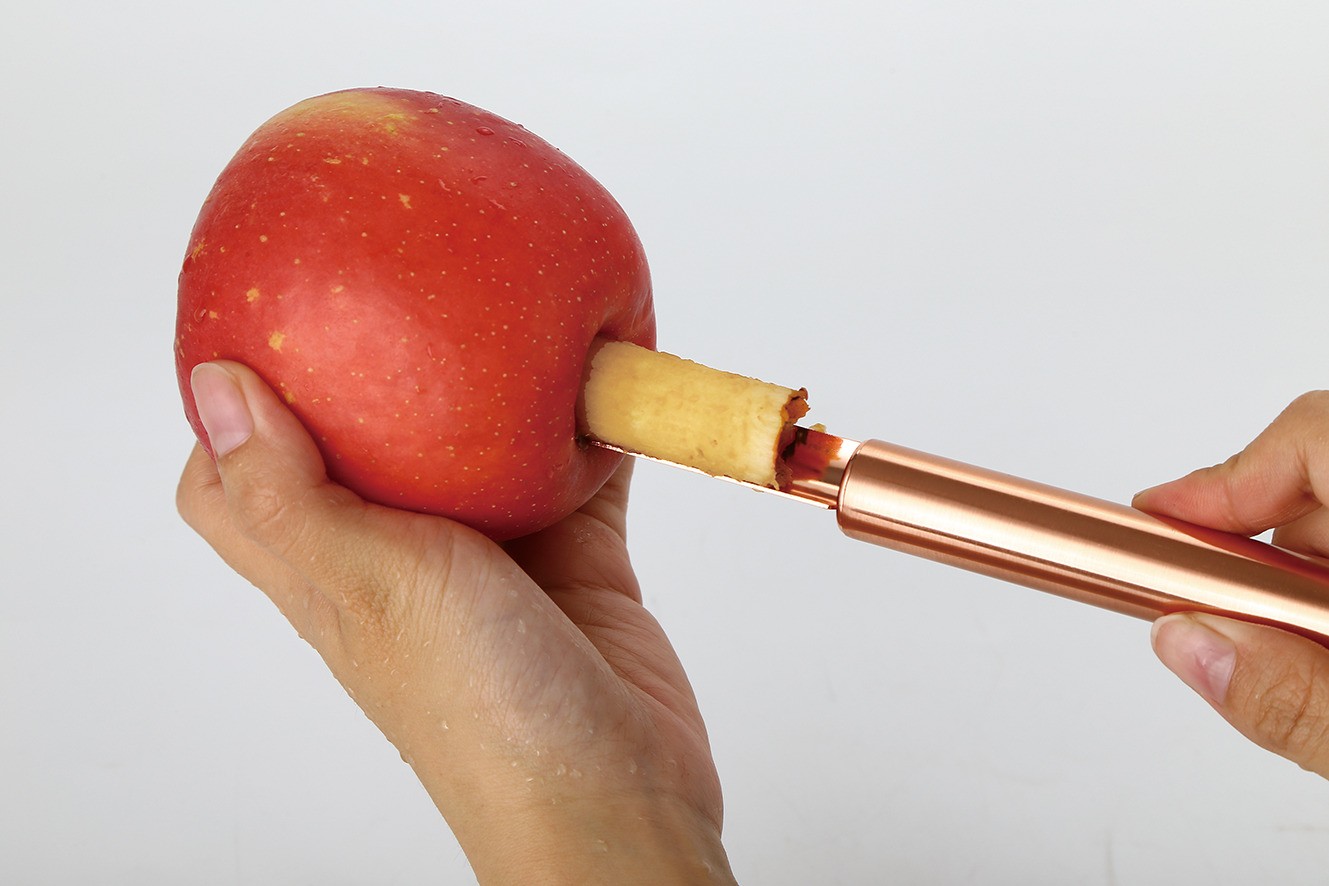 Dzięki prostemu mechanizmowi – delikatnemu przekręceniu i wsunięciu w owoc – szybko i sprawnie usuniesz rdzeń lub nasiona z jabłek, gruszek, pomidorów i wielu innych owoców. To wygodne rozwiązanie pozwala oszczędzić czas i zachować estetyczny wygląd przygotowywanych potraw.