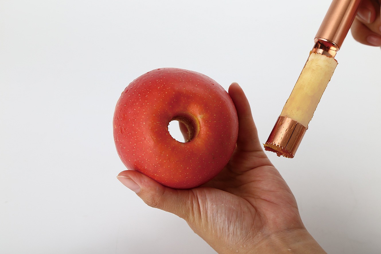 • Skutecznie usuwa rdzeń i nasiona z jabłek, gruszek, pomidorów i innych owoców