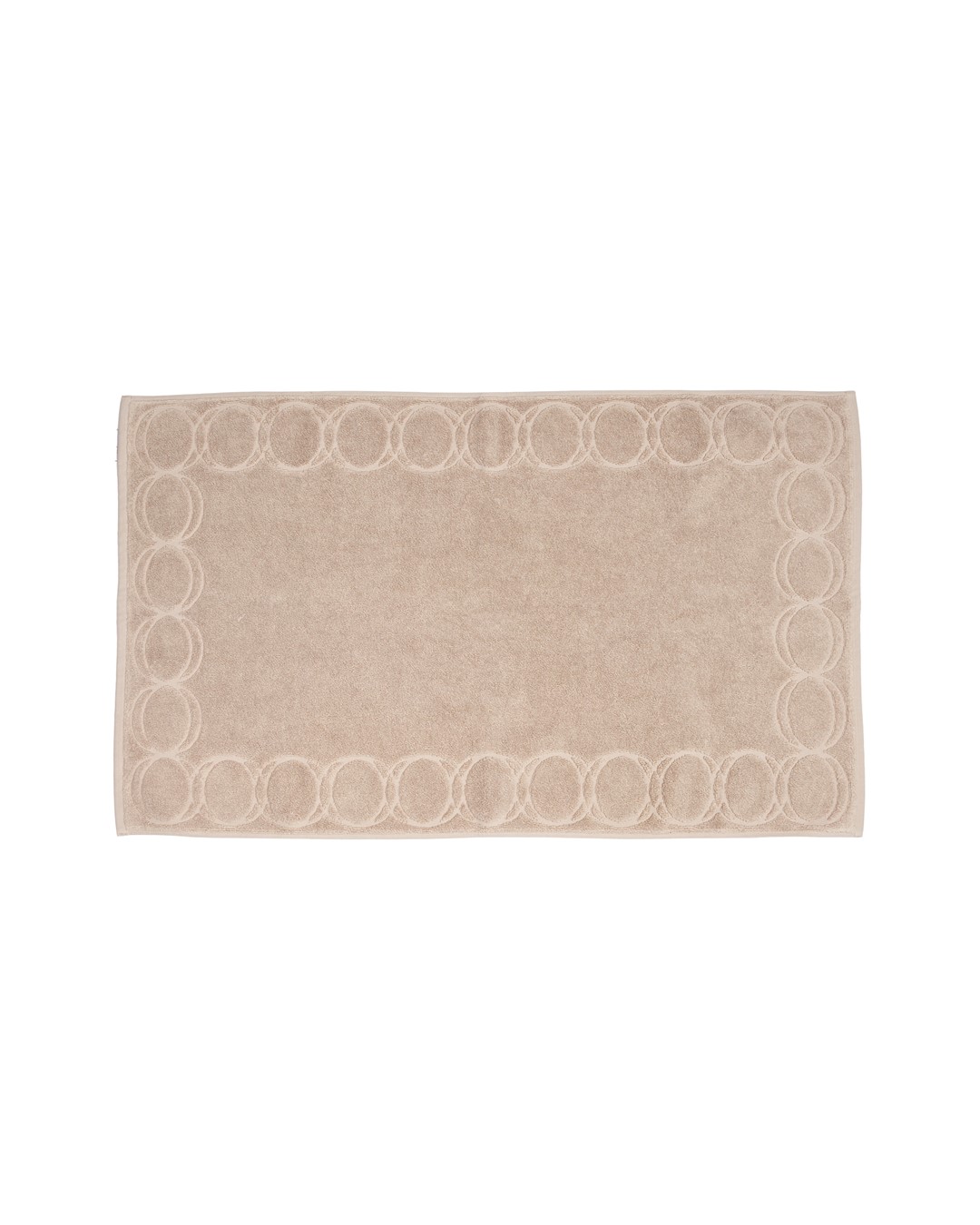 Dywanik Łazienkowy Monogram Opus z kolorowej organicznej bawełny frotte o splocie intrecciato z wytłoczonym wzorem oraz ozdobną lamówką. Bawełna podwójnie czesana, wstępnie prana. Dywanik posiada podwójne przeszycia w tym samym kolorze i zamknięte rogi.