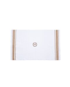Dywanik łazienkowy z białej organicznej bawełny frotte z żakardowymi kolorowymi paskami w aksamitnym splocie chenille. Bawełna odwójnie czesana, wstępnie prana. Dywanik posiada podwójne przeszycia w tym samym kolorze i zamknięte rogi.