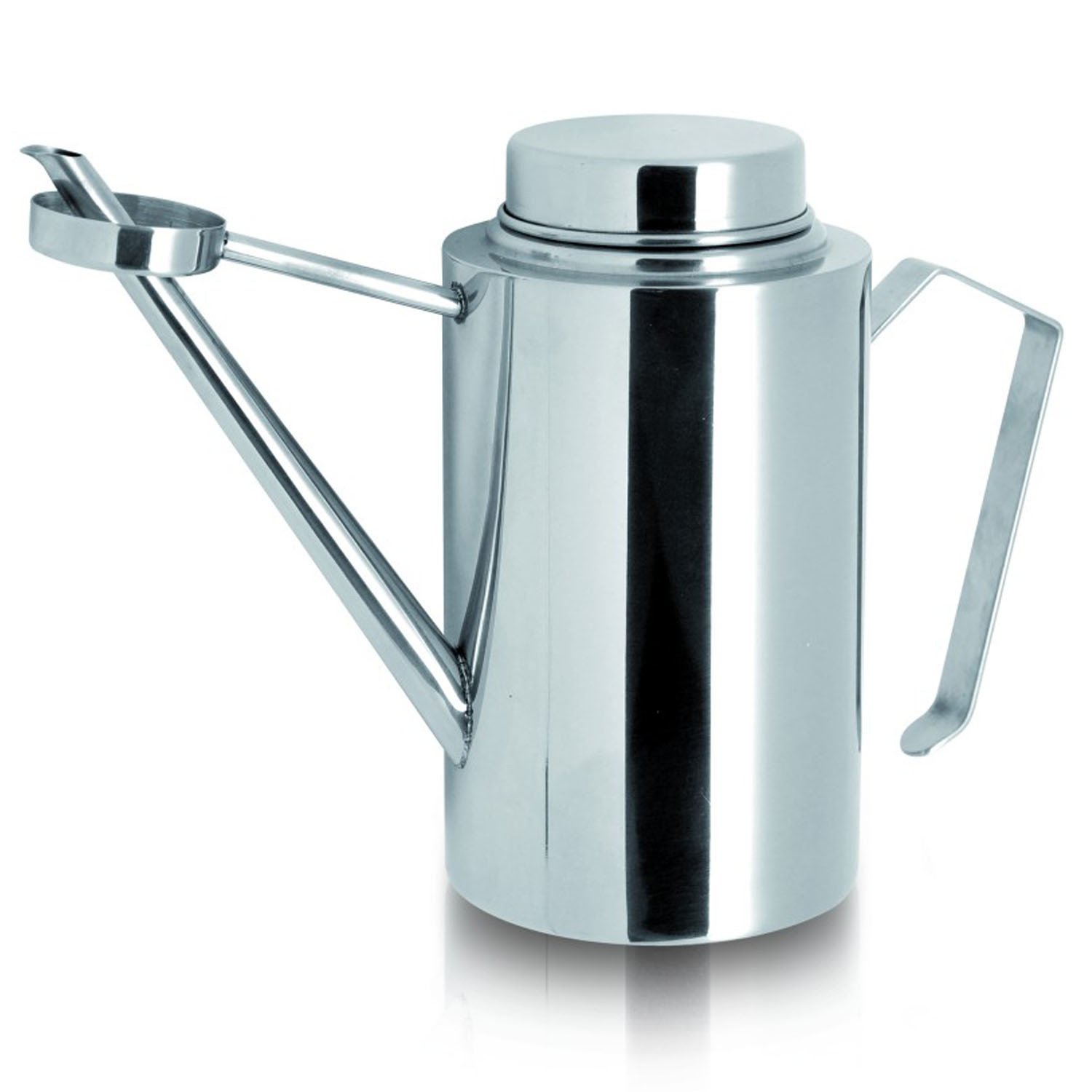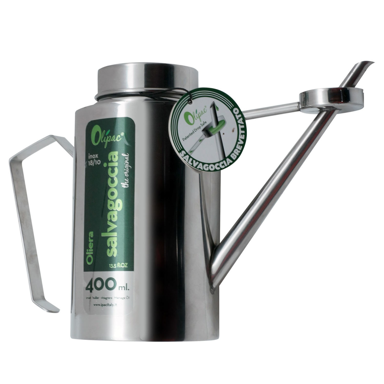 Dzbanek na oliwę ze stali nierdzewnej o pojemności 400ml został wyposażony w jedyny w swoim rodzaju, opatentowany system odprowadzający ściekające krople rynienką z powrotem do dzbanka z oliwą. Stal nierdzewna jest materiałem zdolnym do zachowania organoleptycznych właściwości oliwy wraz z upływem czasu poprzez zagwarantowanie maksymalnej ochrony przed światłem, powietrzem oraz zapachami, zapobiegając utlenianiu oraz pozostałym procesom degradacyjnym. Łatwy w napełnianiu i czyszczeniu. Można myć w zmywarce. Materiał: stal nierdzewna. Pojemność: 0,5L. Wymiary:13,5×19,3×7,5cm. Waga brutto: 0,230kg. Waga netto: 0,225kg.
