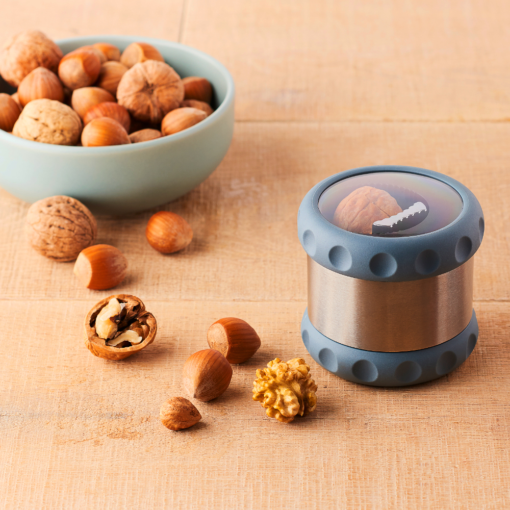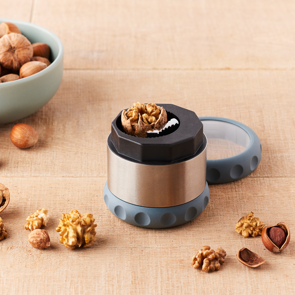 Rozłup orzech bez wysiłku i bałaganu! Wkładasz orzech do dziadka zamykasz przeźroczystą pokrywką a drugą ręka delikatnie zaczynasz kręcić spodem. Przeźroczysta pokrywka umożliwia Ci kontrolę nad procesem zgniatania i zatrzymuje łupinki w środku.