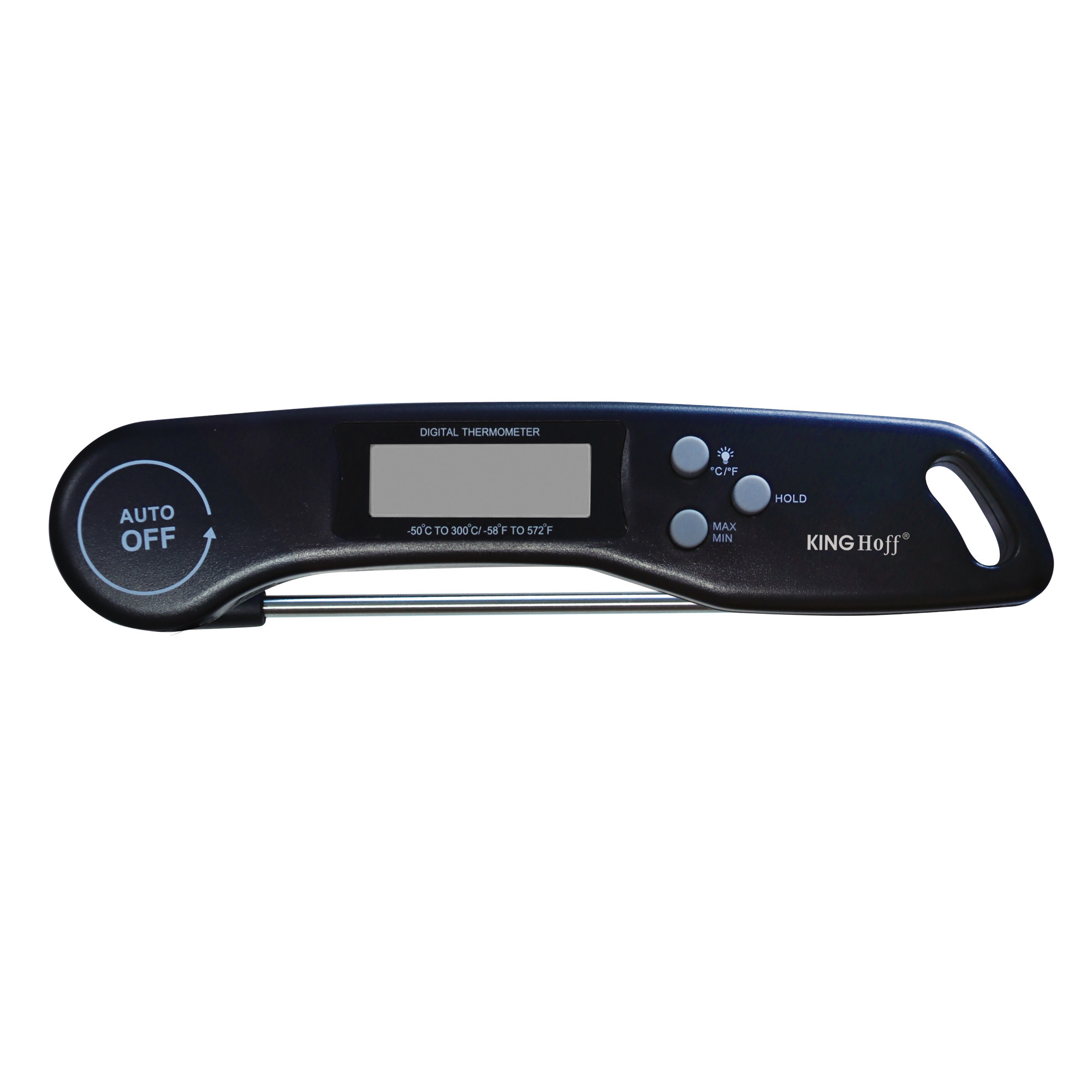 Elektroniczny termometr kuchenny KingHoff to niezastąpione narzędzie dla każdego, kto ceni sobie precyzję w gotowaniu. Wyposażony w czytelny wyświetlacz LCD z podświetleniem i funkcję zmiany jednostek °C/°F, umożliwia szybki i dokładny pomiar temperatury mięs, zup, ciast, a także dań z grilla. Obrotowy ekran, magnes do mocowania oraz otwór do zawieszania sprawiają, że termometr jest maksymalnie praktyczny i łatwy w przechowywaniu.