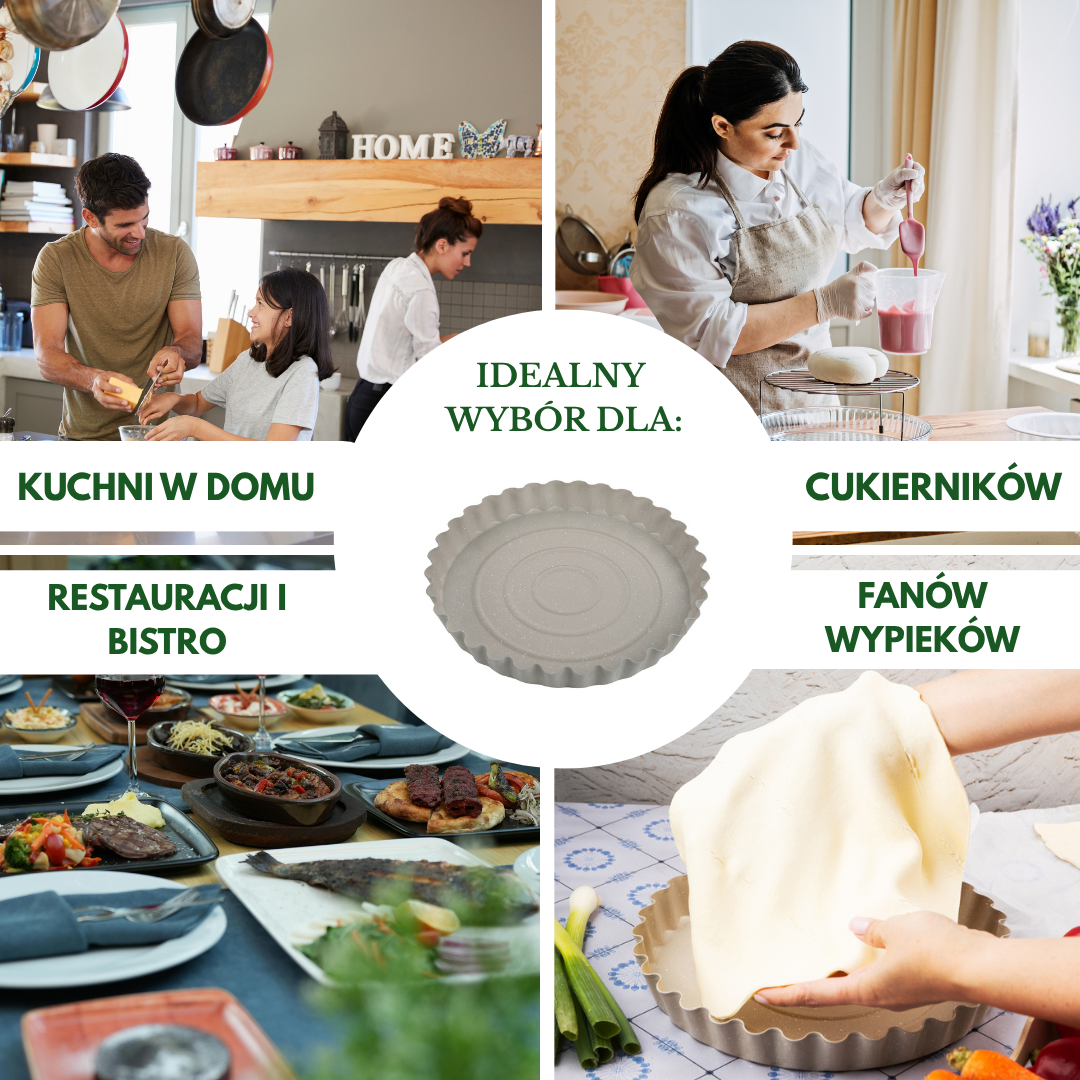 Świetnie sprawdzi się do tart, quiche, kruchych spodów, serników na zimno czy deserów zapiekanych. To niezawodne narzędzie, które podniesie jakość Twojego pieczenia i doda stylu każdej kuchni.
