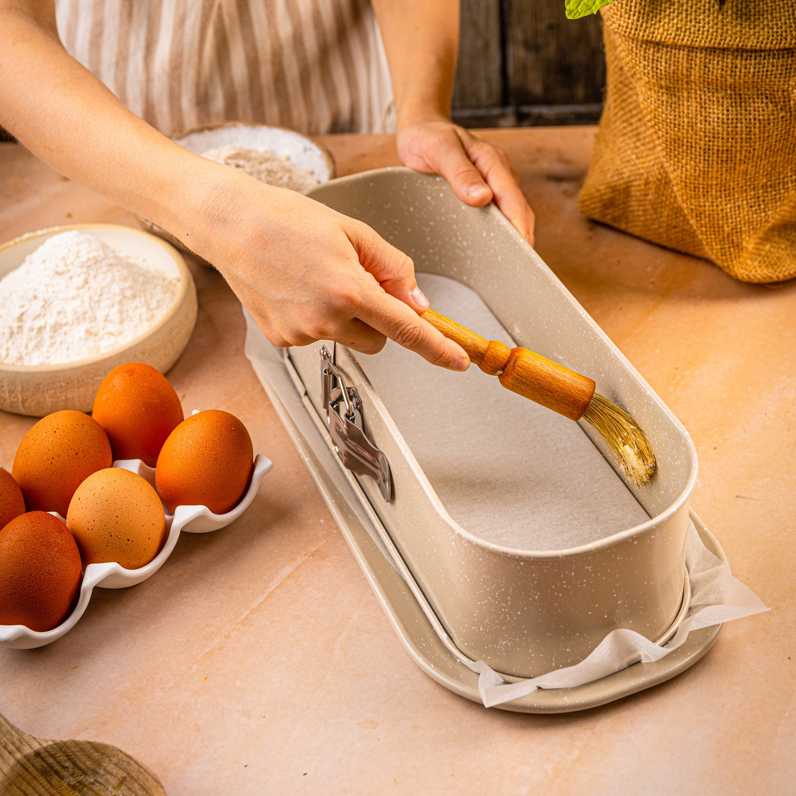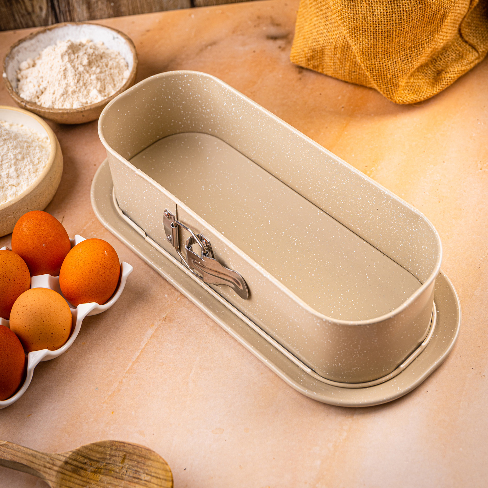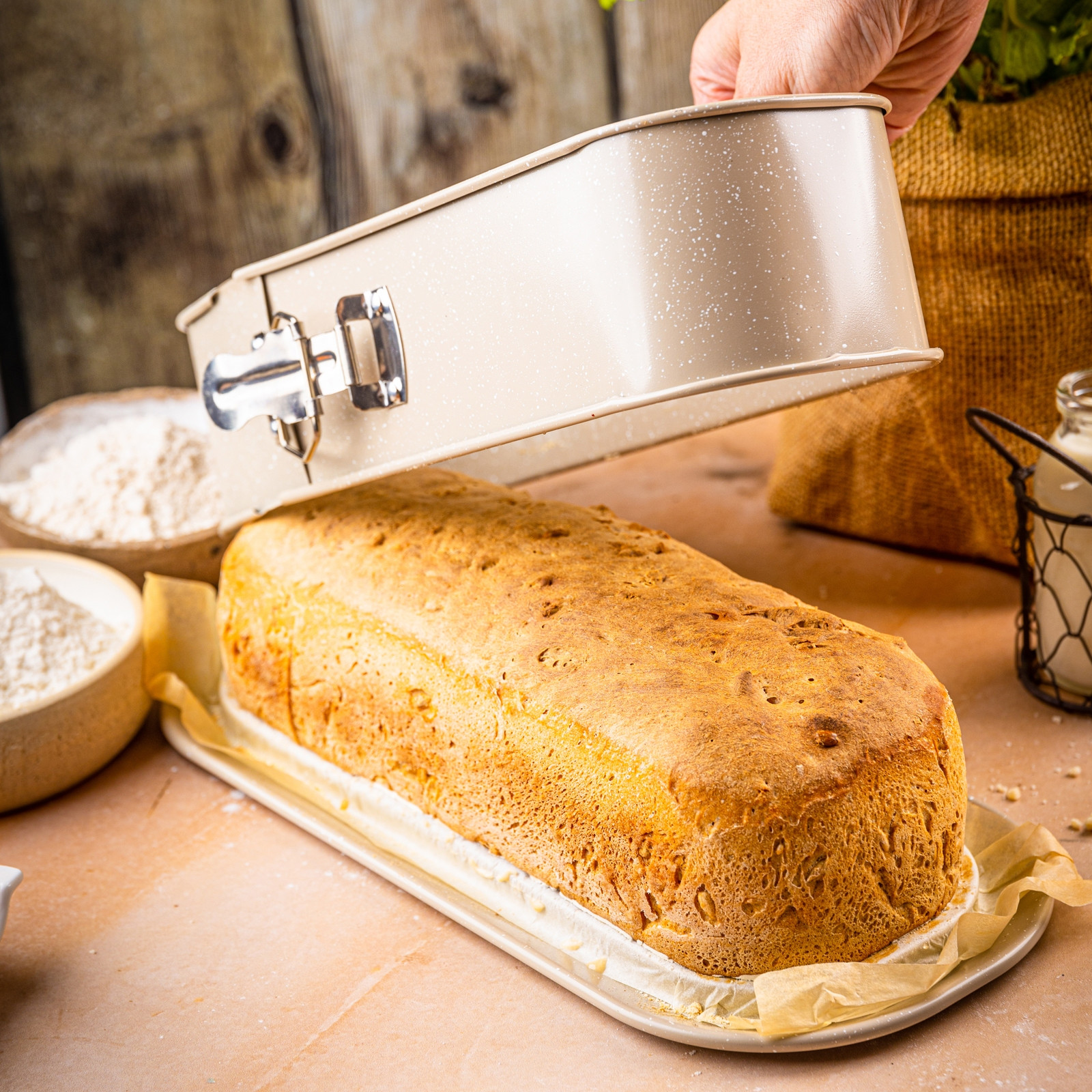 Wypiekasz, otwierasz klamrę i gotowe – bez szarpania, łamania i wycinania ciasta. Rant odchodzi równomiernie, a wypiek zachowuje idealny kształt. Dzięki osobnej tacy dolnej możesz piec i od razu podać danie – praktycznie, estetycznie i bez bałaganu.