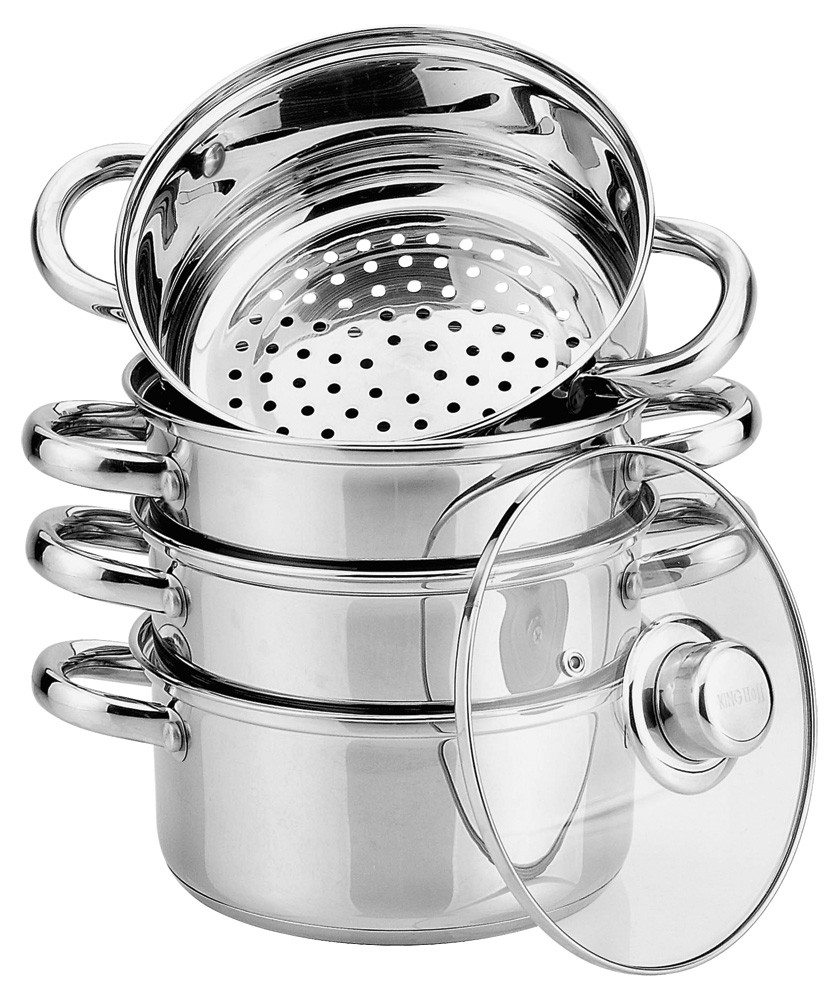 Komplet garnków do gotowania na parze wykonany jest z wysokiej jakości stali nierdzewnej. Wykorzystana stal składa się z najlepszej jakości stopu powszechnie stosowanego w światowej klasy produktach, co gwarantuje jej wysoką odporność na korozję oraz bardzo dobrą wytrzymałość.