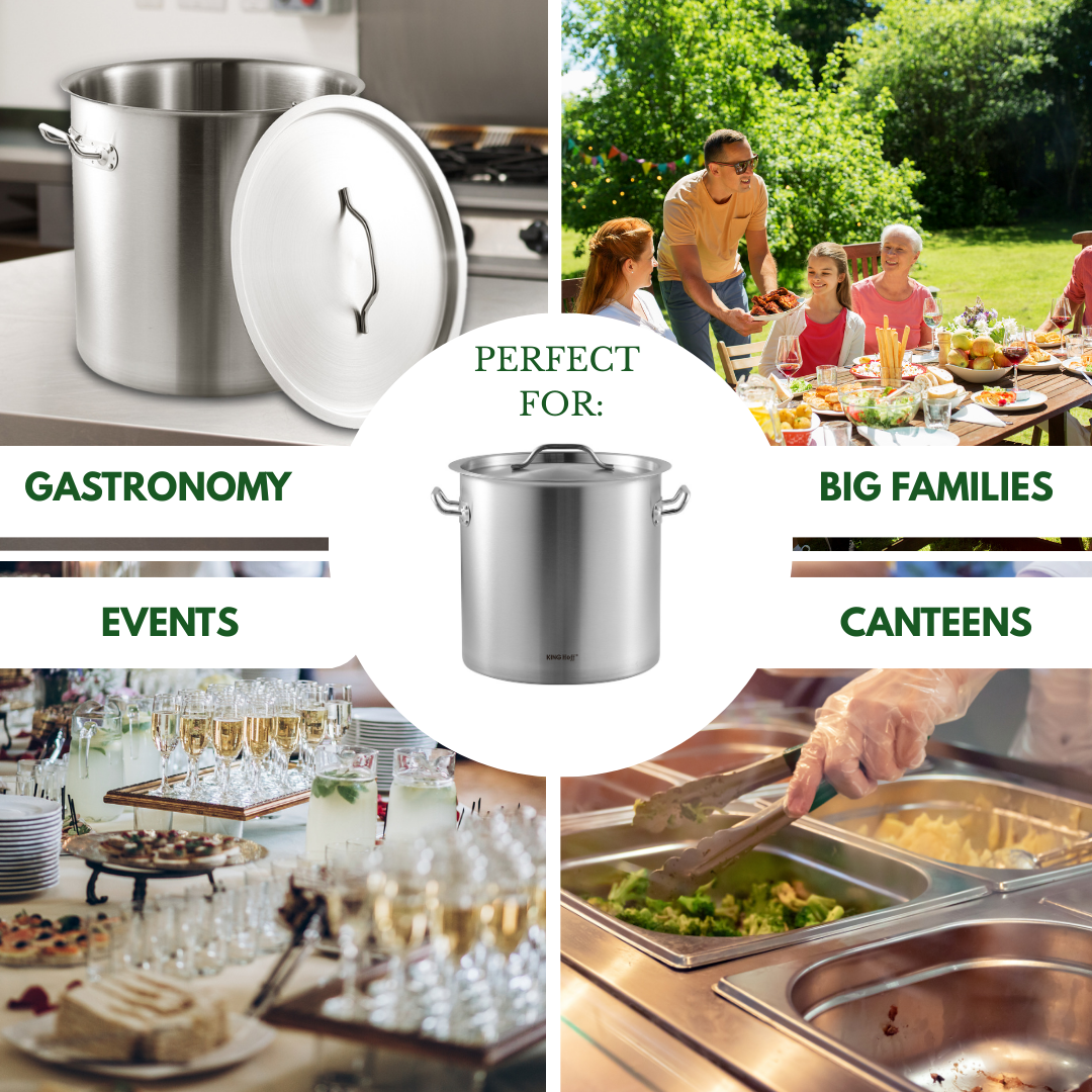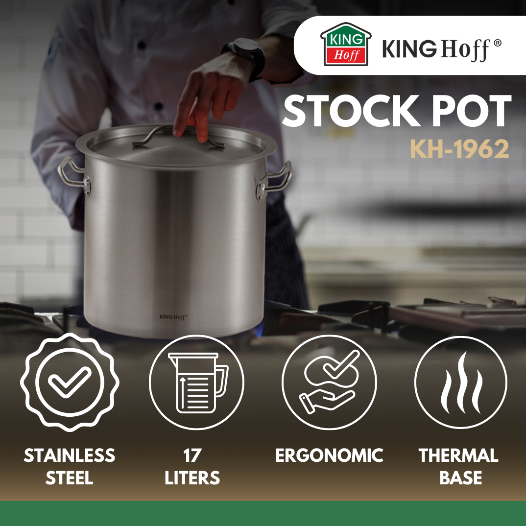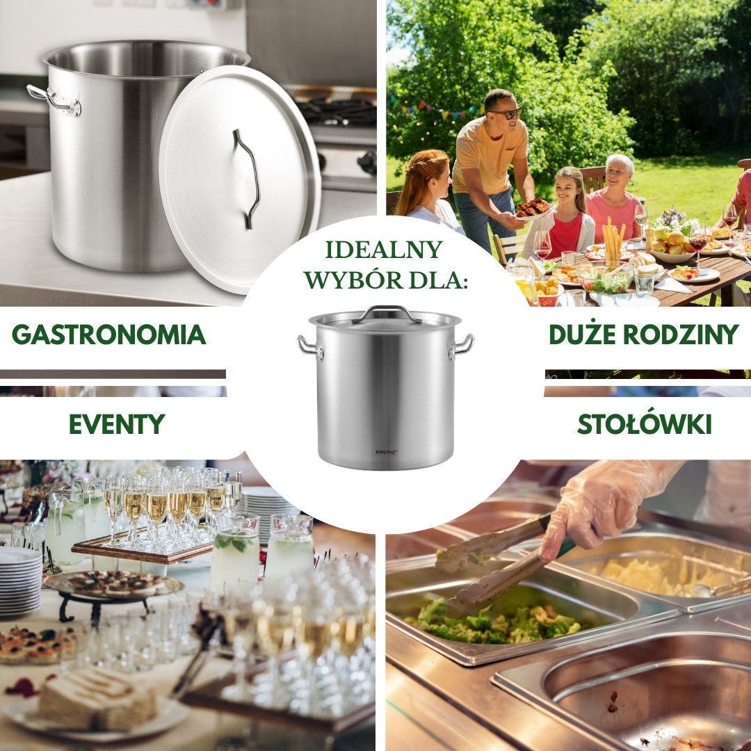 Garnek gastronomiczny KINGHoff o pojemności 21 l to idealne rozwiązanie do kuchni profesjonalnych i domowych, gdzie liczy się niezawodność i komfort użytkowania. Wykonany ze stali nierdzewnej, z dnem kapsułowym i dobrze dopasowaną pokrywką, pozwala gotować sprawnie i bezpiecznie.