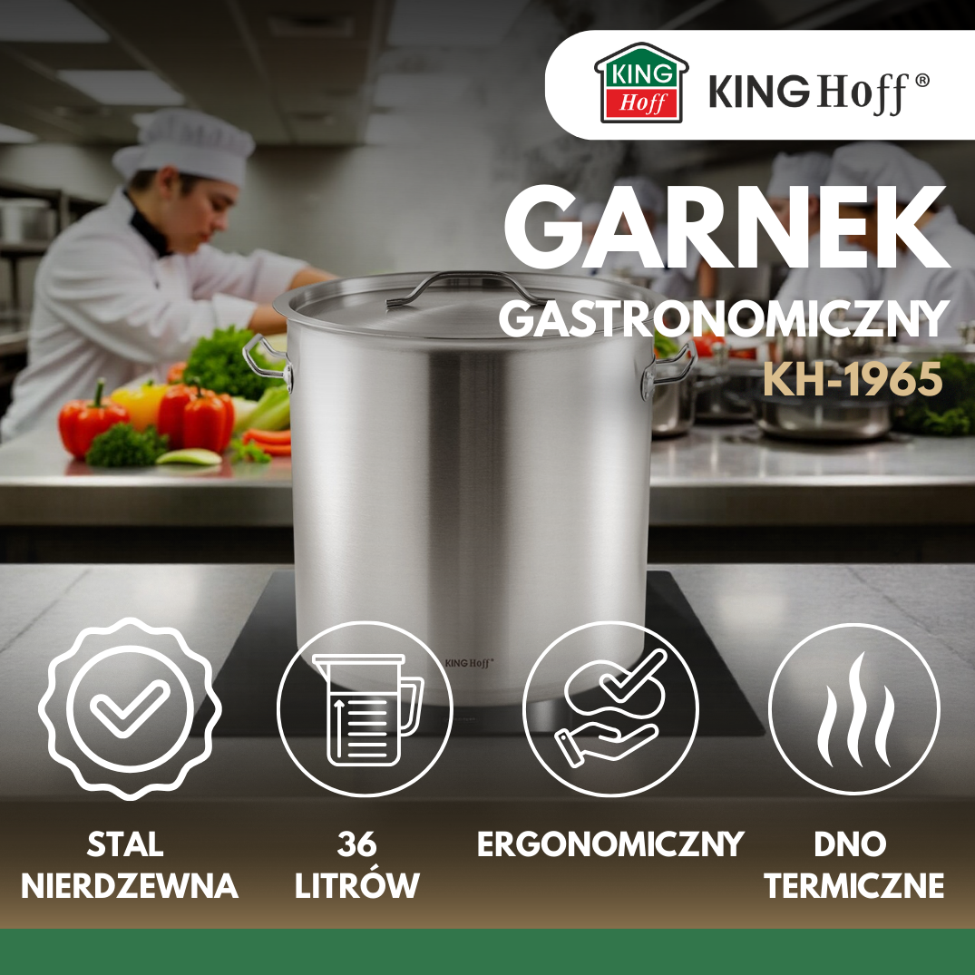 Garnek gastronomiczny KINGHoff o pojemności 36 l to trwałe i pojemne naczynie stworzone z myślą o profesjonalnej kuchni, gdzie liczy się niezawodność i komfort użytkowania. Dzięki starannie dobranym materiałom i funkcjonalnym detalom sprawdzi się przy codziennej, intensywnej eksploatacji.