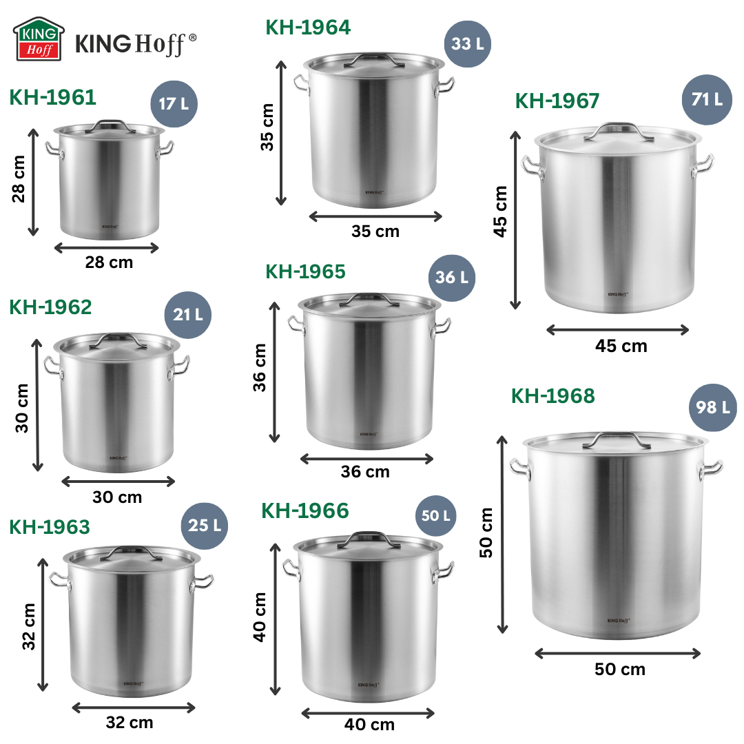 Garnek gastronomiczny KINGHoff o pojemności 71 l to propozycja dla najbardziej wymagających kuchni zbiorowych, punktów żywienia i profesjonalnych kucharzy. Wysokiej jakości stal nierdzewna, solidne dno kapsułowe i praktyczne rozwiązania zapewniają wygodę nawet przy intensywnym użytkowaniu.
