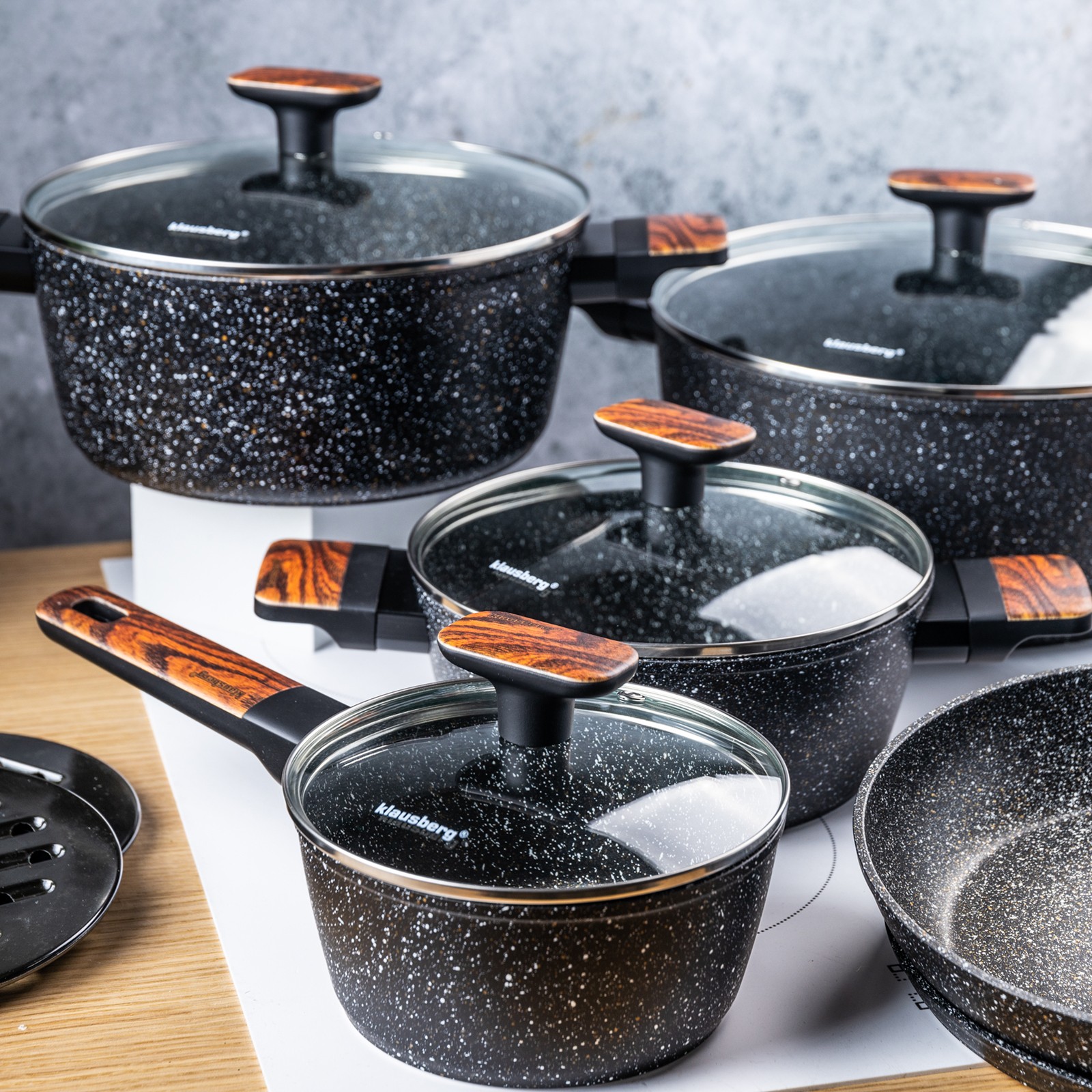 Klausberg to producent akcesoriów kuchennych, który łączy nowoczesne technologie z funkcjonalnym designem. W ofercie marki znajdziesz garnki Klausberg ze stali nierdzewnej, zestawy garnków z powłoką marmurową, patelnie z nieprzywierającą powłoką oraz praktyczne akcesoria kuchenne Klausberg do gotowania, smażenia i pieczenia. Dzięki zastosowaniu wysokiej jakości materiałów – stali szlachetnej i aluminium z powłoką marmurkową – naczynia równomiernie rozprowadzają ciepło i są przystosowane do wszystkich typów kuchenek, w tym płyt indukcyjnych.