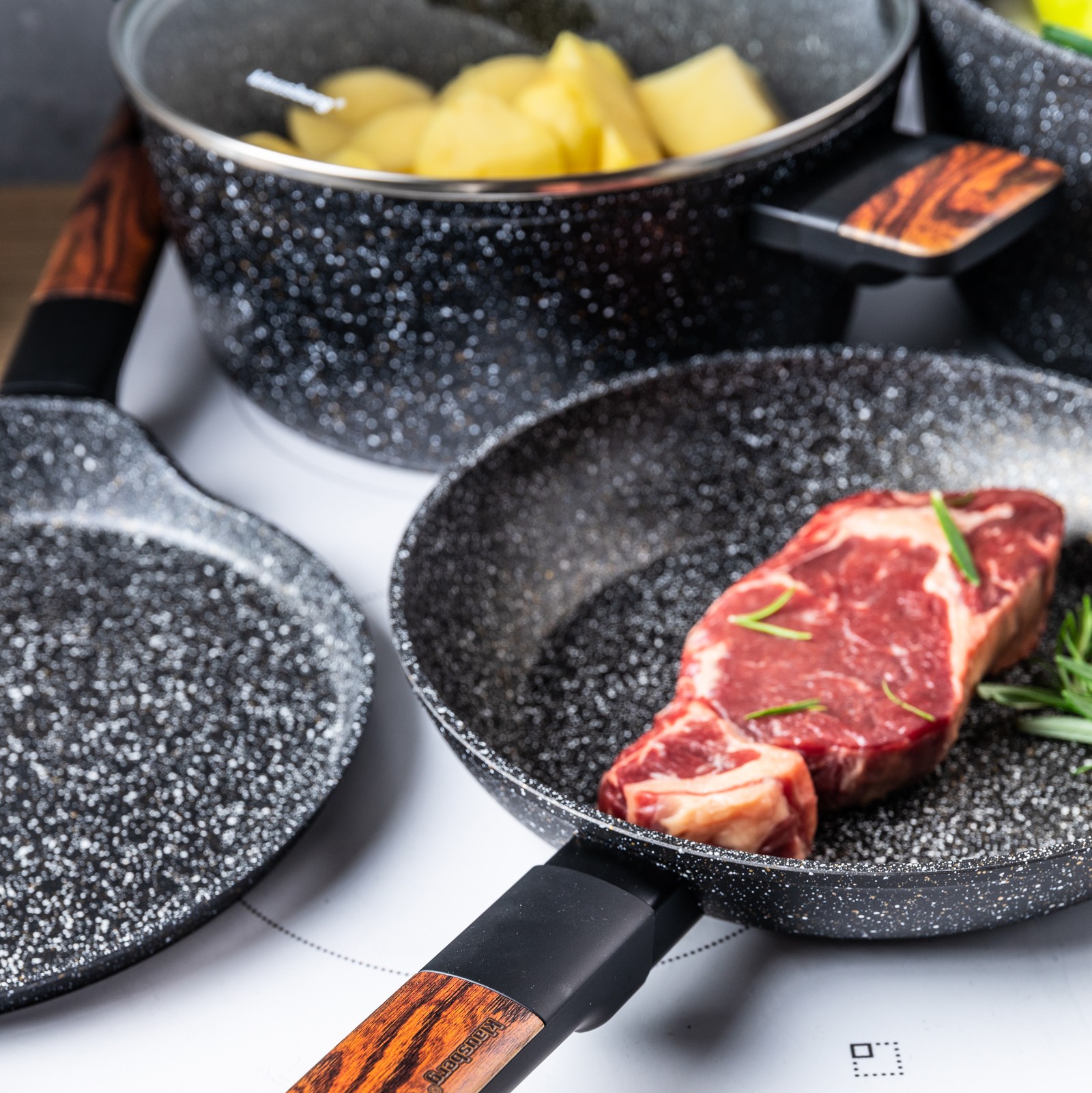 • Kompatybilność ze wszystkimi typami kuchenek: gazowymi, elektrycznymi, ceramicznymi, halogenowymi oraz indukcyjnymi, co czyni zestaw niezwykle uniwersalnym.
