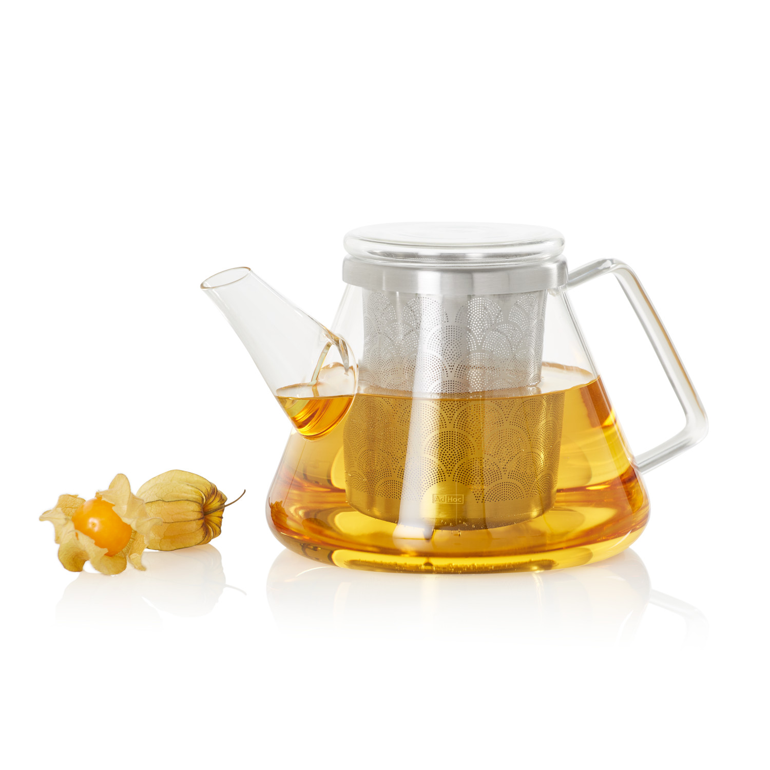 Imbryczek FUSION jest wyposażony w duży filtr ze stali nierdzewnej, umożliwiający liściom herbaty pełne uwolnienie swojego aromatu. Dzięki zastosowaniu filtra o niezwykle drobnych otworach, możliwe jest stosowanie sypkich herbat i jednocześnie uzyskiwanie bardzo klarownego naparu pozbawionego cząsteczek herbaty. Imbryczek został wykonany ze szkła borokrzemowego, które nie przekazuje smaków, a filtr ze stali nierdzewnej posiada bardzo wygodnie wyprofilowaną krawędź, pozwalającą na łatwe wyjęcie go z imbryczka. Przykrywka imbryczka może służyć również jako podstawka dla stalowego filtra. Produkt został zaprojektowany przez AdHoc Design Team. Materiał: szkło borokrzemowe, stal nierdzewna. Przybliżone wymiary: wysokość 12,5cm, średnica 15cm. Pojemność: 1L. Przybliżone wymiary filtra: wysokość 10,5cm, średnica 8,8cm. Przybliżone wymiary brutto: wysokość – 15,1cm, długość – 21,5cm, szerokość – 19,2cm. Opakowanie: kartonowe pudełko prezentowe.