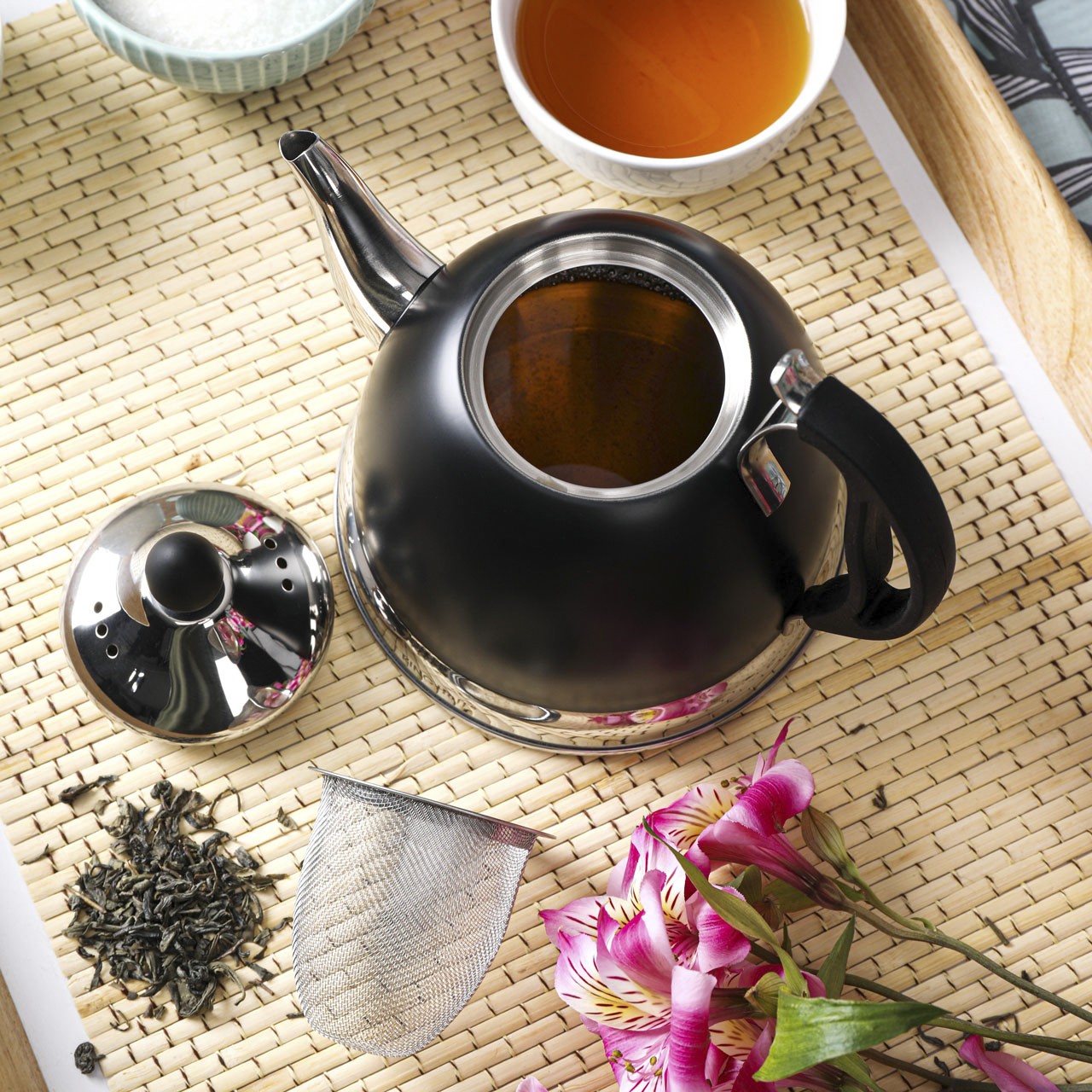 Imbryk z sitkiem idealny do zaparzania herbaty i ziół.